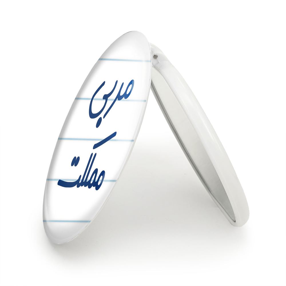آینه های تاشو مربی مملکت خندالو، از جنس پلاستیک فشرده ABS تولید شده و به رنگ سفید می باشد. یکی از آینه ها ابعاد واقعی را نشان داده و دیگری با قابلیت بزرگنمایی، جزئیات را بهتر نمایش می دهد. ابعاد هر یک از آینه ها، دایره ای به قطر 7.5 سانت می باشد که نه خیلی بزرگ و غیر قابل استفاده در کیف آرایشی ست و نه خیلی کوچک که تصویر خاصی در آن مشاهده نشود. آینه تاشو مربی مملکت سایزی استاندارد و کارآمد دارد و در هر کیفی جا میگیرد. چاپ طرح بوسیله چاپگرهای دیجیتال شش رنگ با شفافیت و کیفیتی مثال زدنی بر روی یک وجه از بدنه ی آینه انجام گرفته و با روکش لمینت حرارتی پوشیده شده که در مقابل آسیب و خط و خش مقاوم بوده و کیفیت بالایی دارد. درب آینه بوسیله قفل بدنه ی آن، باز نمی ماند و کاملا بسته می شود و مناسب قرار گیری در کیف لوازم آرایش و کیف های کوچک دستی نیز هست. آینه های تاشو مربی مملکت خندالو با تنوع طرحی بسیار بالا، سلیقه هر نوع مخاطبی را تامین میکند.
