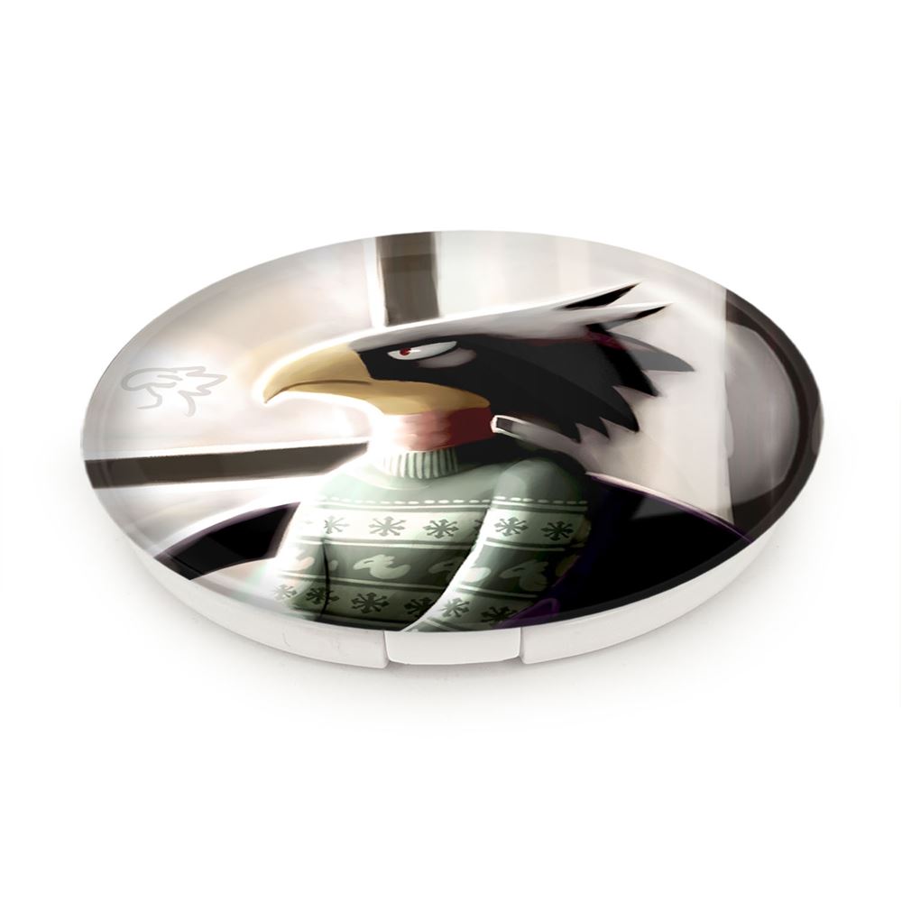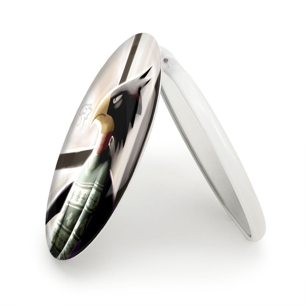 آینه های تاشو مرد کلاغی انیمه آکادمی قهرمان من خندالو، از جنس پلاستیک فشرده ABS تولید شده و به رنگ سفید می باشد. یکی از آینه ها ابعاد واقعی را نشان داده و دیگری با قابلیت بزرگنمایی، جزئیات را بهتر نمایش می دهد. ابعاد هر یک از آینه ها، دایره ای به قطر 7.5 سانت می باشد که نه خیلی بزرگ و غیر قابل استفاده در کیف آرایشی ست و نه خیلی کوچک که تصویر خاصی در آن مشاهده نشود. آینه تاشو مرد کلاغی انیمه آکادمی قهرمان من سایزی استاندارد و کارآمد دارد و در هر کیفی جا میگیرد. چاپ طرح بوسیله چاپگرهای دیجیتال شش رنگ با شفافیت و کیفیتی مثال زدنی بر روی یک وجه از بدنه ی آینه انجام گرفته و با روکش لمینت حرارتی پوشیده شده که در مقابل آسیب و خط و خش مقاوم بوده و کیفیت بالایی دارد. درب آینه بوسیله قفل بدنه ی آن، باز نمی ماند و کاملا بسته می شود و مناسب قرار گیری در کیف لوازم آرایش و کیف های کوچک دستی نیز هست. آینه های تاشو مرد کلاغی انیمه آکادمی قهرمان من خندالو با تنوع طرحی بسیار بالا، سلیقه هر نوع مخاطبی را تامین میکند.