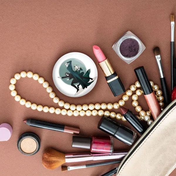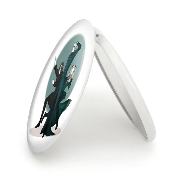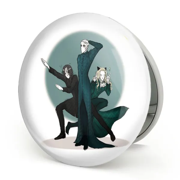 آینه های تاشو مرگ خواران هری پاتر Harry Potter خندالو، از جنس پلاستیک فشرده ABS تولید شده و به رنگ سفید می باشد. یکی از آینه ها ابعاد واقعی را نشان داده و دیگری با قابلیت بزرگنمایی، جزئیات را بهتر نمایش می دهد. ابعاد هر یک از آینه ها، دایره ای به قطر 7.5 سانت می باشد که نه خیلی بزرگ و غیر قابل استفاده در کیف آرایشی ست و نه خیلی کوچک که تصویر خاصی در آن مشاهده نشود. آینه تاشو مرگ خواران هری پاتر Harry Potter سایزی استاندارد و کارآمد دارد و در هر کیفی جا میگیرد. چاپ طرح بوسیله چاپگرهای دیجیتال شش رنگ با شفافیت و کیفیتی مثال زدنی بر روی یک وجه از بدنه ی آینه انجام گرفته و با روکش لمینت حرارتی پوشیده شده که در مقابل آسیب و خط و خش مقاوم بوده و کیفیت بالایی دارد. درب آینه بوسیله قفل بدنه ی آن، باز نمی ماند و کاملا بسته می شود و مناسب قرار گیری در کیف لوازم آرایش و کیف های کوچک دستی نیز هست. آینه های تاشو مرگ خواران هری پاتر Harry Potter خندالو با تنوع طرحی بسیار بالا، سلیقه هر نوع مخاطبی را تامین میکند.