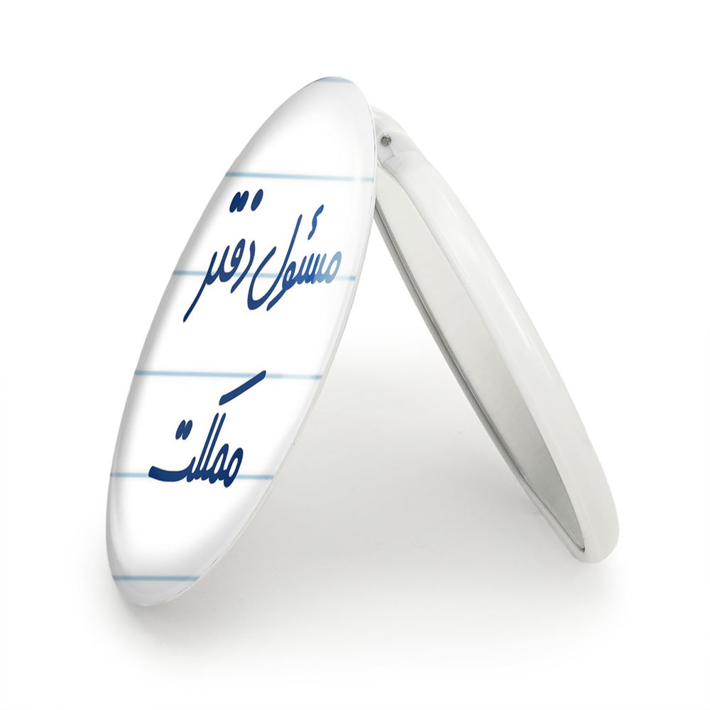 آینه های تاشو مسئول دفتر مملکت خندالو، از جنس پلاستیک فشرده ABS تولید شده و به رنگ سفید می باشد. یکی از آینه ها ابعاد واقعی را نشان داده و دیگری با قابلیت بزرگنمایی، جزئیات را بهتر نمایش می دهد. ابعاد هر یک از آینه ها، دایره ای به قطر 7.5 سانت می باشد که نه خیلی بزرگ و غیر قابل استفاده در کیف آرایشی ست و نه خیلی کوچک که تصویر خاصی در آن مشاهده نشود. آینه تاشو مسئول دفتر مملکت سایزی استاندارد و کارآمد دارد و در هر کیفی جا میگیرد. چاپ طرح بوسیله چاپگرهای دیجیتال شش رنگ با شفافیت و کیفیتی مثال زدنی بر روی یک وجه از بدنه ی آینه انجام گرفته و با روکش لمینت حرارتی پوشیده شده که در مقابل آسیب و خط و خش مقاوم بوده و کیفیت بالایی دارد. درب آینه بوسیله قفل بدنه ی آن، باز نمی ماند و کاملا بسته می شود و مناسب قرار گیری در کیف لوازم آرایش و کیف های کوچک دستی نیز هست. آینه های تاشو مسئول دفتر مملکت خندالو با تنوع طرحی بسیار بالا، سلیقه هر نوع مخاطبی را تامین میکند.