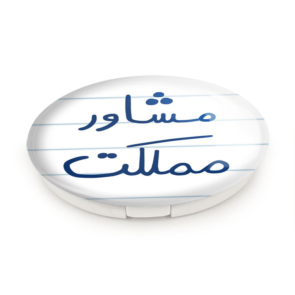 آینه های تاشو مشاور مملکت خندالو، از جنس پلاستیک فشرده ABS تولید شده و به رنگ سفید می باشد. یکی از آینه ها ابعاد واقعی را نشان داده و دیگری با قابلیت بزرگنمایی، جزئیات را بهتر نمایش می دهد. ابعاد هر یک از آینه ها، دایره ای به قطر 7.5 سانت می باشد که نه خیلی بزرگ و غیر قابل استفاده در کیف آرایشی ست و نه خیلی کوچک که تصویر خاصی در آن مشاهده نشود. آینه تاشو مشاور مملکت سایزی استاندارد و کارآمد دارد و در هر کیفی جا میگیرد. چاپ طرح بوسیله چاپگرهای دیجیتال شش رنگ با شفافیت و کیفیتی مثال زدنی بر روی یک وجه از بدنه ی آینه انجام گرفته و با روکش لمینت حرارتی پوشیده شده که در مقابل آسیب و خط و خش مقاوم بوده و کیفیت بالایی دارد. درب آینه بوسیله قفل بدنه ی آن، باز نمی ماند و کاملا بسته می شود و مناسب قرار گیری در کیف لوازم آرایش و کیف های کوچک دستی نیز هست. آینه های تاشو مشاور مملکت خندالو با تنوع طرحی بسیار بالا، سلیقه هر نوع مخاطبی را تامین میکند.