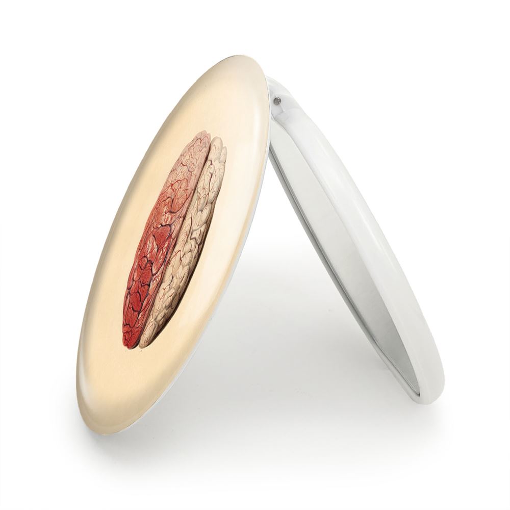 آینه های تاشو مغز Brain خندالو، از جنس پلاستیک فشرده ABS تولید شده و به رنگ سفید می باشد. یکی از آینه ها ابعاد واقعی را نشان داده و دیگری با قابلیت بزرگنمایی، جزئیات را بهتر نمایش می دهد.