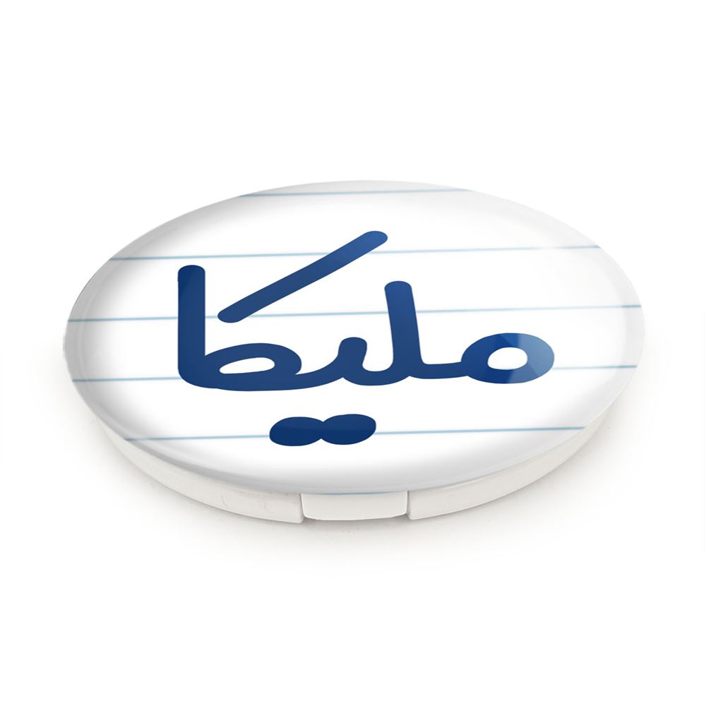 آینه های تاشو ملیکا خندالو، از جنس پلاستیک فشرده ABS تولید شده و به رنگ سفید می باشد. یکی از آینه ها ابعاد واقعی را نشان داده و دیگری با قابلیت بزرگنمایی، جزئیات را بهتر نمایش می دهد. ابعاد هر یک از آینه ها، دایره ای به قطر 7.5 سانت می باشد که نه خیلی بزرگ و غیر قابل استفاده در کیف آرایشی ست و نه خیلی کوچک که تصویر خاصی در آن مشاهده نشود. آینه تاشو ملیکا سایزی استاندارد و کارآمد دارد و در هر کیفی جا میگیرد. چاپ طرح بوسیله چاپگرهای دیجیتال شش رنگ با شفافیت و کیفیتی مثال زدنی بر روی یک وجه از بدنه ی آینه انجام گرفته و با روکش لمینت حرارتی پوشیده شده که در مقابل آسیب و خط و خش مقاوم بوده و کیفیت بالایی دارد. درب آینه بوسیله قفل بدنه ی آن، باز نمی ماند و کاملا بسته می شود و مناسب قرار گیری در کیف لوازم آرایش و کیف های کوچک دستی نیز هست. آینه های تاشو ملیکا خندالو با تنوع طرحی بسیار بالا، سلیقه هر نوع مخاطبی را تامین میکند.