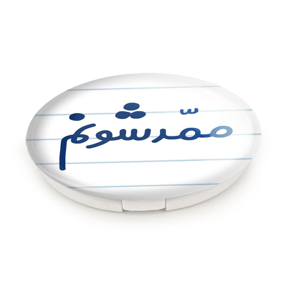آینه های تاشو ممدشونم خندالو، از جنس پلاستیک فشرده ABS تولید شده و به رنگ سفید می باشد. یکی از آینه ها ابعاد واقعی را نشان داده و دیگری با قابلیت بزرگنمایی، جزئیات را بهتر نمایش می دهد. ابعاد هر یک از آینه ها، دایره ای به قطر 7.5 سانت می باشد که نه خیلی بزرگ و غیر قابل استفاده در کیف آرایشی ست و نه خیلی کوچک که تصویر خاصی در آن مشاهده نشود. آینه تاشو ممدشونم سایزی استاندارد و کارآمد دارد و در هر کیفی جا میگیرد. چاپ طرح بوسیله چاپگرهای دیجیتال شش رنگ با شفافیت و کیفیتی مثال زدنی بر روی یک وجه از بدنه ی آینه انجام گرفته و با روکش لمینت حرارتی پوشیده شده که در مقابل آسیب و خط و خش مقاوم بوده و کیفیت بالایی دارد. درب آینه بوسیله قفل بدنه ی آن، باز نمی ماند و کاملا بسته می شود و مناسب قرار گیری در کیف لوازم آرایش و کیف های کوچک دستی نیز هست. آینه های تاشو ممدشونم خندالو با تنوع طرحی بسیار بالا، سلیقه هر نوع مخاطبی را تامین میکند.