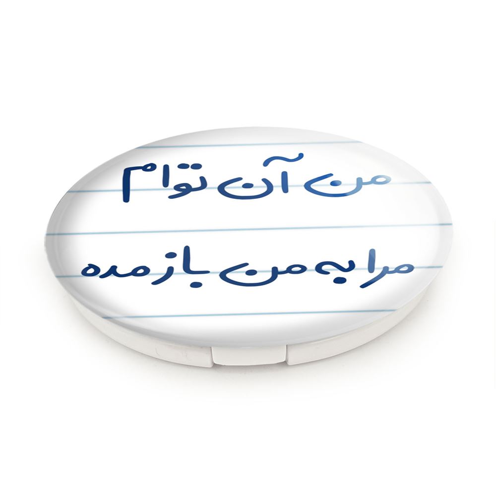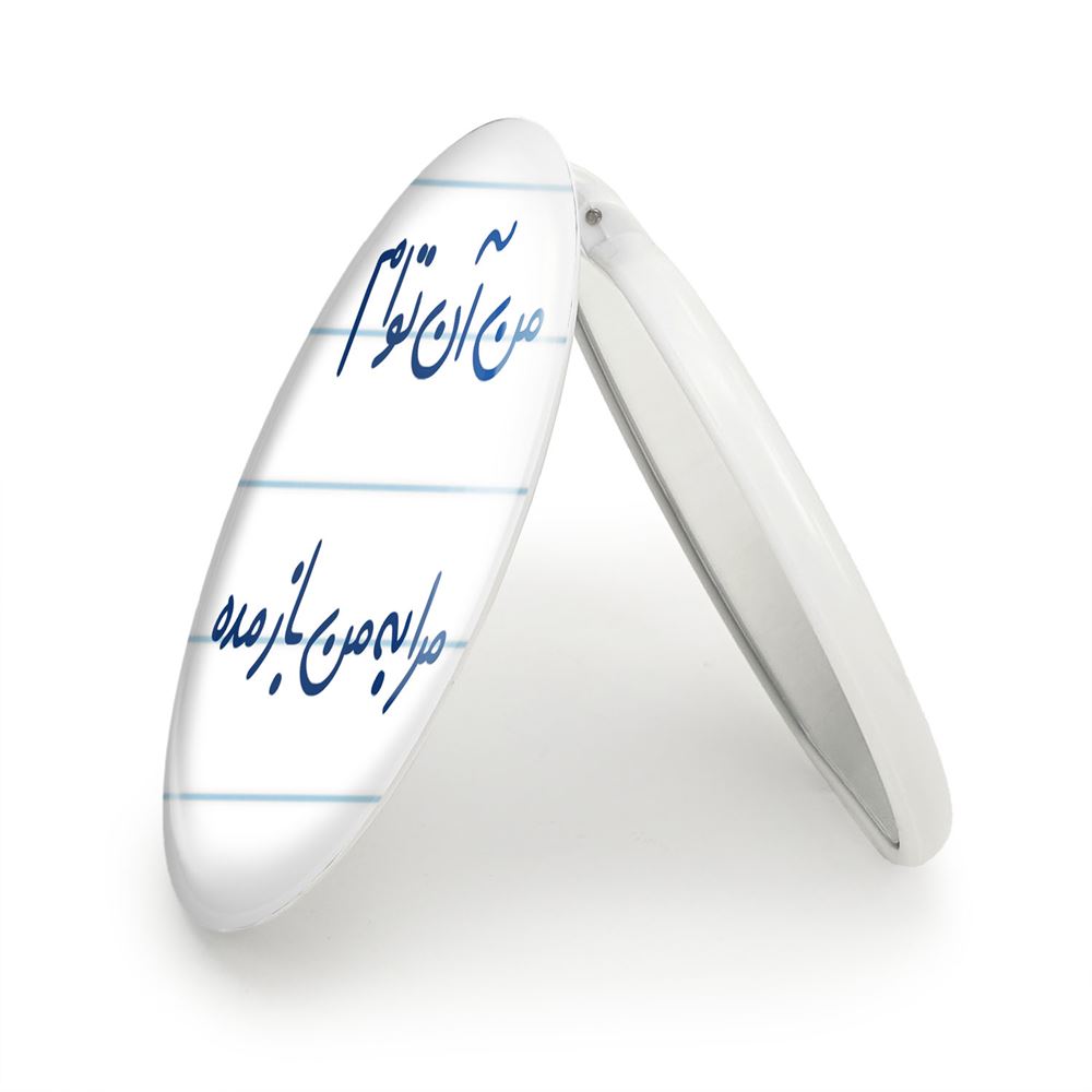 آینه های تاشو من آن توام مرا به من باز مده خندالو، از جنس پلاستیک فشرده ABS تولید شده و به رنگ سفید می باشد. یکی از آینه ها ابعاد واقعی را نشان داده و دیگری با قابلیت بزرگنمایی، جزئیات را بهتر نمایش می دهد. ابعاد هر یک از آینه ها، دایره ای به قطر 7.5 سانت می باشد که نه خیلی بزرگ و غیر قابل استفاده در کیف آرایشی ست و نه خیلی کوچک که تصویر خاصی در آن مشاهده نشود. آینه تاشو من آن توام مرا به من باز مده سایزی استاندارد و کارآمد دارد و در هر کیفی جا میگیرد. چاپ طرح بوسیله چاپگرهای دیجیتال شش رنگ با شفافیت و کیفیتی مثال زدنی بر روی یک وجه از بدنه ی آینه انجام گرفته و با روکش لمینت حرارتی پوشیده شده که در مقابل آسیب و خط و خش مقاوم بوده و کیفیت بالایی دارد. درب آینه بوسیله قفل بدنه ی آن، باز نمی ماند و کاملا بسته می شود و مناسب قرار گیری در کیف لوازم آرایش و کیف های کوچک دستی نیز هست. آینه های تاشو من آن توام مرا به من باز مده خندالو با تنوع طرحی بسیار بالا، سلیقه هر نوع مخاطبی را تامین میکند.