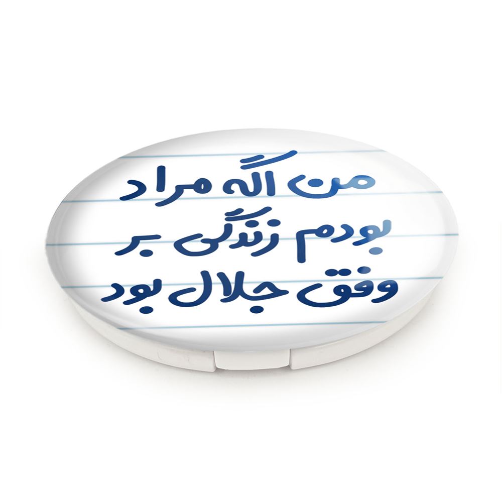 آینه های تاشو من اگه مراد بودم زندگی بر وفق جلال بود خندالو، از جنس پلاستیک فشرده ABS تولید شده و به رنگ سفید می باشد. یکی از آینه ها ابعاد واقعی را نشان داده و دیگری با قابلیت بزرگنمایی، جزئیات را بهتر نمایش می دهد. ابعاد هر یک از آینه ها، دایره ای به قطر 7.5 سانت می باشد که نه خیلی بزرگ و غیر قابل استفاده در کیف آرایشی ست و نه خیلی کوچک که تصویر خاصی در آن مشاهده نشود. آینه تاشو من اگه مراد بودم زندگی بر وفق جلال بود سایزی استاندارد و کارآمد دارد و در هر کیفی جا میگیرد. چاپ طرح بوسیله چاپگرهای دیجیتال شش رنگ با شفافیت و کیفیتی مثال زدنی بر روی یک وجه از بدنه ی آینه انجام گرفته و با روکش لمینت حرارتی پوشیده شده که در مقابل آسیب و خط و خش مقاوم بوده و کیفیت بالایی دارد. درب آینه بوسیله قفل بدنه ی آن، باز نمی ماند و کاملا بسته می شود و مناسب قرار گیری در کیف لوازم آرایش و کیف های کوچک دستی نیز هست. آینه های تاشو من اگه مراد بودم زندگی بر وفق جلال بود خندالو با تنوع طرحی بسیار بالا، سلیقه هر نوع مخاطبی را تامین میکند.