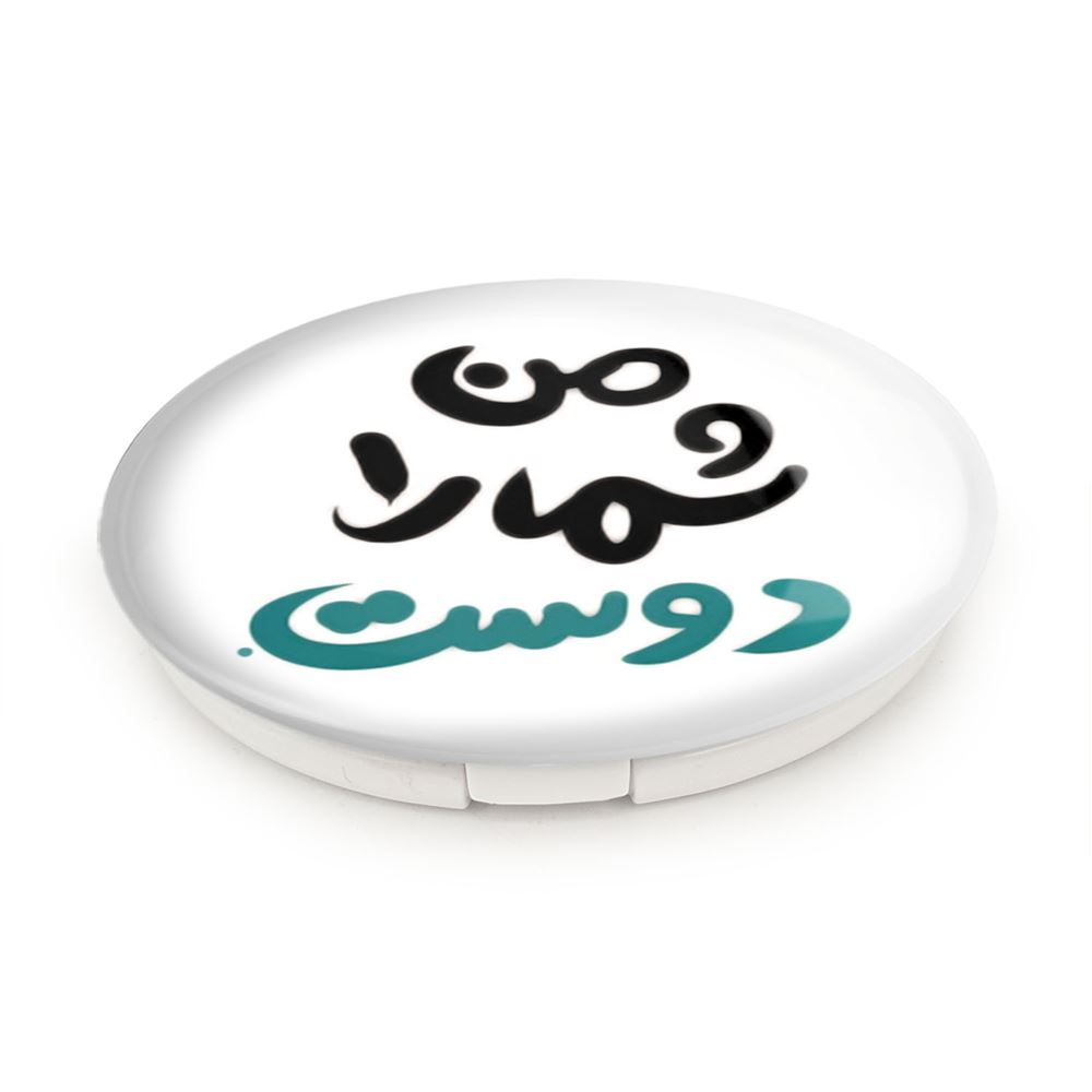 آینه های تاشو من شما را دوست خندالو، از جنس پلاستیک فشرده ABS تولید شده و به رنگ سفید می باشد. یکی از آینه ها ابعاد واقعی را نشان داده و دیگری با قابلیت بزرگنمایی، جزئیات را بهتر نمایش می دهد. ابعاد هر یک از آینه ها، دایره ای به قطر 7.5 سانت می باشد که نه خیلی بزرگ و غیر قابل استفاده در کیف آرایشی ست و نه خیلی کوچک که تصویر خاصی در آن مشاهده نشود. آینه تاشو من شما را دوست سایزی استاندارد و کارآمد دارد و در هر کیفی جا میگیرد. چاپ طرح بوسیله چاپگرهای دیجیتال شش رنگ با شفافیت و کیفیتی مثال زدنی بر روی یک وجه از بدنه ی آینه انجام گرفته و با روکش لمینت حرارتی پوشیده شده که در مقابل آسیب و خط و خش مقاوم بوده و کیفیت بالایی دارد. درب آینه بوسیله قفل بدنه ی آن، باز نمی ماند و کاملا بسته می شود و مناسب قرار گیری در کیف لوازم آرایش و کیف های کوچک دستی نیز هست. آینه های تاشو من شما را دوست خندالو با تنوع طرحی بسیار بالا، سلیقه هر نوع مخاطبی را تامین میکند.