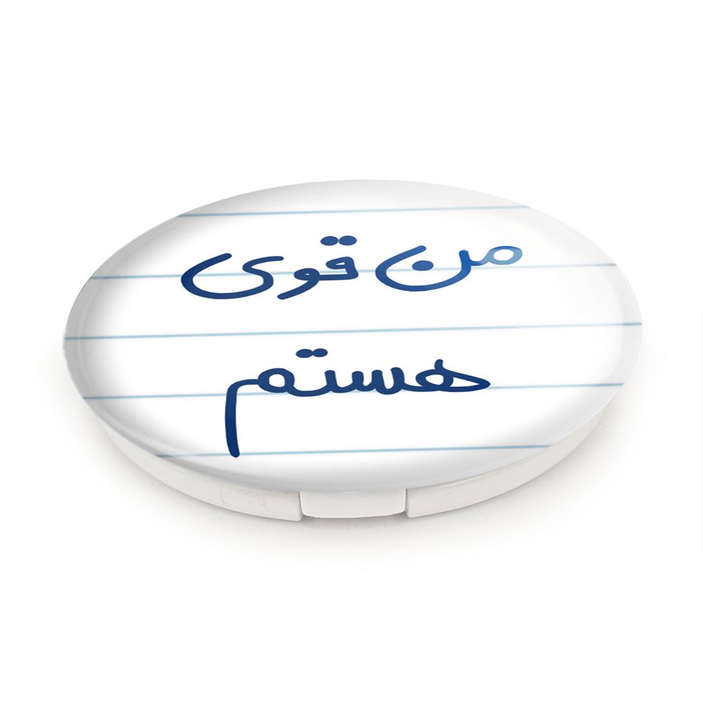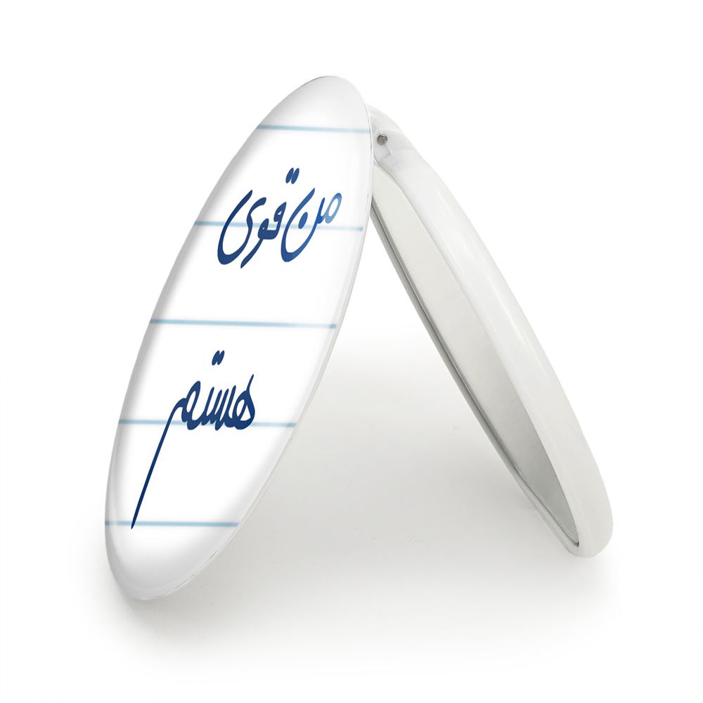 آینه های تاشو من قوی هستم خندالو، از جنس پلاستیک فشرده ABS تولید شده و به رنگ سفید می باشد. یکی از آینه ها ابعاد واقعی را نشان داده و دیگری با قابلیت بزرگنمایی، جزئیات را بهتر نمایش می دهد. ابعاد هر یک از آینه ها، دایره ای به قطر 7.5 سانت می باشد که نه خیلی بزرگ و غیر قابل استفاده در کیف آرایشی ست و نه خیلی کوچک که تصویر خاصی در آن مشاهده نشود. آینه تاشو من قوی هستم سایزی استاندارد و کارآمد دارد و در هر کیفی جا میگیرد. چاپ طرح بوسیله چاپگرهای دیجیتال شش رنگ با شفافیت و کیفیتی مثال زدنی بر روی یک وجه از بدنه ی آینه انجام گرفته و با روکش لمینت حرارتی پوشیده شده که در مقابل آسیب و خط و خش مقاوم بوده و کیفیت بالایی دارد. درب آینه بوسیله قفل بدنه ی آن، باز نمی ماند و کاملا بسته می شود و مناسب قرار گیری در کیف لوازم آرایش و کیف های کوچک دستی نیز هست. آینه های تاشو من قوی هستم خندالو با تنوع طرحی بسیار بالا، سلیقه هر نوع مخاطبی را تامین میکند.