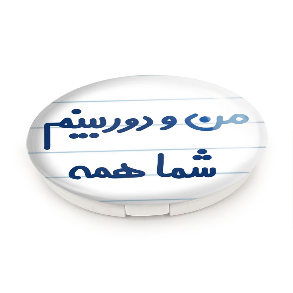 آینه های تاشو من و دوربینم شما همه خندالو، از جنس پلاستیک فشرده ABS تولید شده و به رنگ سفید می باشد. یکی از آینه ها ابعاد واقعی را نشان داده و دیگری با قابلیت بزرگنمایی، جزئیات را بهتر نمایش می دهد. ابعاد هر یک از آینه ها، دایره ای به قطر 7.5 سانت می باشد که نه خیلی بزرگ و غیر قابل استفاده در کیف آرایشی ست و نه خیلی کوچک که تصویر خاصی در آن مشاهده نشود. آینه تاشو من و دوربینم شما همه سایزی استاندارد و کارآمد دارد و در هر کیفی جا میگیرد. چاپ طرح بوسیله چاپگرهای دیجیتال شش رنگ با شفافیت و کیفیتی مثال زدنی بر روی یک وجه از بدنه ی آینه انجام گرفته و با روکش لمینت حرارتی پوشیده شده که در مقابل آسیب و خط و خش مقاوم بوده و کیفیت بالایی دارد. درب آینه بوسیله قفل بدنه ی آن، باز نمی ماند و کاملا بسته می شود و مناسب قرار گیری در کیف لوازم آرایش و کیف های کوچک دستی نیز هست. آینه های تاشو من و دوربینم شما همه خندالو با تنوع طرحی بسیار بالا، سلیقه هر نوع مخاطبی را تامین میکند.