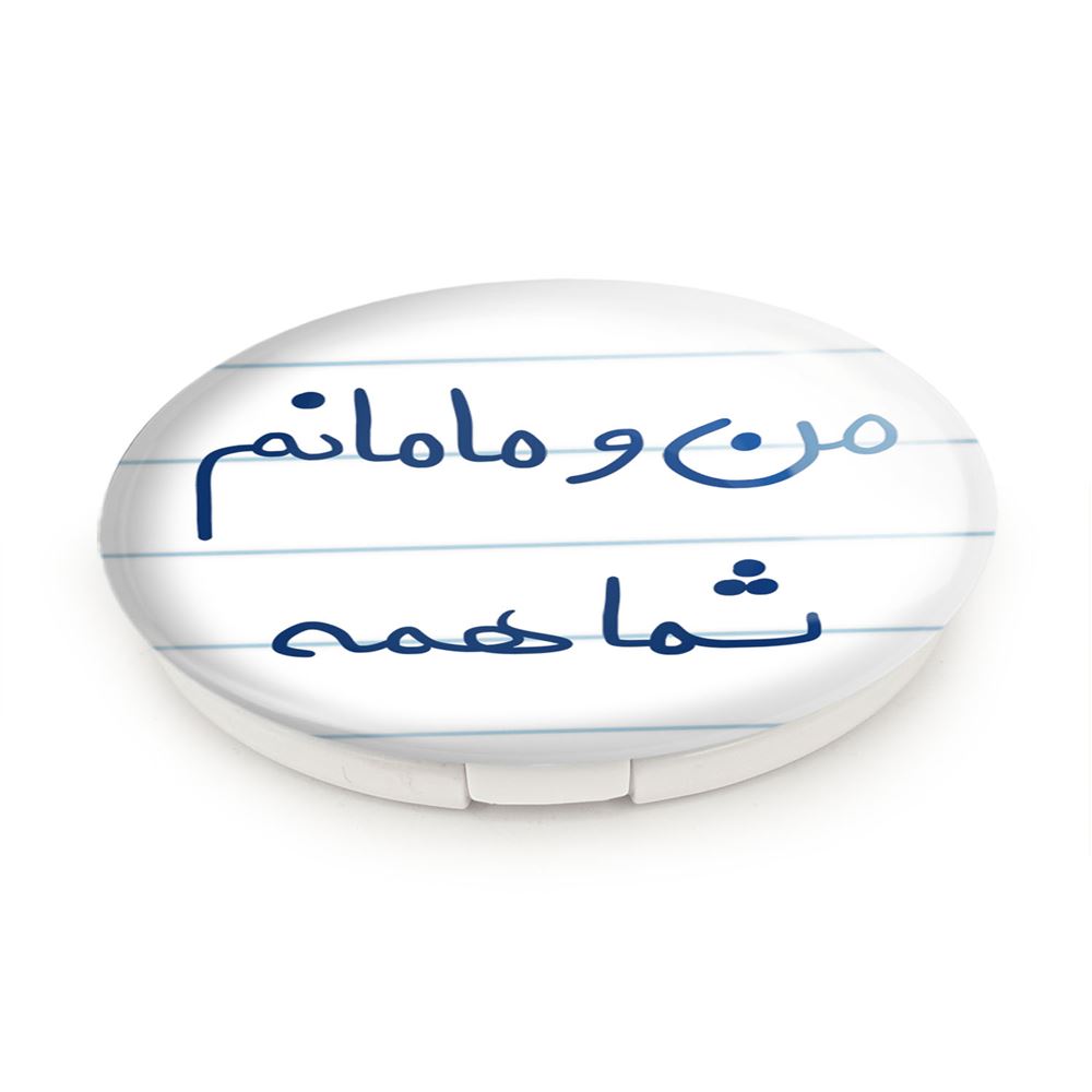 آینه های تاشو من و مامانم شما همه خندالو، از جنس پلاستیک فشرده ABS تولید شده و به رنگ سفید می باشد. یکی از آینه ها ابعاد واقعی را نشان داده و دیگری با قابلیت بزرگنمایی، جزئیات را بهتر نمایش می دهد. ابعاد هر یک از آینه ها، دایره ای به قطر 7.5 سانت می باشد که نه خیلی بزرگ و غیر قابل استفاده در کیف آرایشی ست و نه خیلی کوچک که تصویر خاصی در آن مشاهده نشود. آینه تاشو من و مامانم شما همه سایزی استاندارد و کارآمد دارد و در هر کیفی جا میگیرد. چاپ طرح بوسیله چاپگرهای دیجیتال شش رنگ با شفافیت و کیفیتی مثال زدنی بر روی یک وجه از بدنه ی آینه انجام گرفته و با روکش لمینت حرارتی پوشیده شده که در مقابل آسیب و خط و خش مقاوم بوده و کیفیت بالایی دارد. درب آینه بوسیله قفل بدنه ی آن، باز نمی ماند و کاملا بسته می شود و مناسب قرار گیری در کیف لوازم آرایش و کیف های کوچک دستی نیز هست. آینه های تاشو من و مامانم شما همه خندالو با تنوع طرحی بسیار بالا، سلیقه هر نوع مخاطبی را تامین میکند.