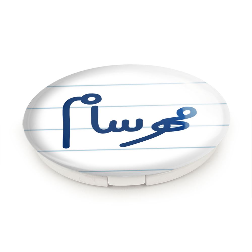 آینه های تاشو مهرسام خندالو، از جنس پلاستیک فشرده ABS تولید شده و به رنگ سفید می باشد. یکی از آینه ها ابعاد واقعی را نشان داده و دیگری با قابلیت بزرگنمایی، جزئیات را بهتر نمایش می دهد. ابعاد هر یک از آینه ها، دایره ای به قطر 7.5 سانت می باشد که نه خیلی بزرگ و غیر قابل استفاده در کیف آرایشی ست و نه خیلی کوچک که تصویر خاصی در آن مشاهده نشود. آینه تاشو مهرسام سایزی استاندارد و کارآمد دارد و در هر کیفی جا میگیرد. چاپ طرح بوسیله چاپگرهای دیجیتال شش رنگ با شفافیت و کیفیتی مثال زدنی بر روی یک وجه از بدنه ی آینه انجام گرفته و با روکش لمینت حرارتی پوشیده شده که در مقابل آسیب و خط و خش مقاوم بوده و کیفیت بالایی دارد. درب آینه بوسیله قفل بدنه ی آن، باز نمی ماند و کاملا بسته می شود و مناسب قرار گیری در کیف لوازم آرایش و کیف های کوچک دستی نیز هست. آینه های تاشو مهرسام خندالو با تنوع طرحی بسیار بالا، سلیقه هر نوع مخاطبی را تامین میکند.