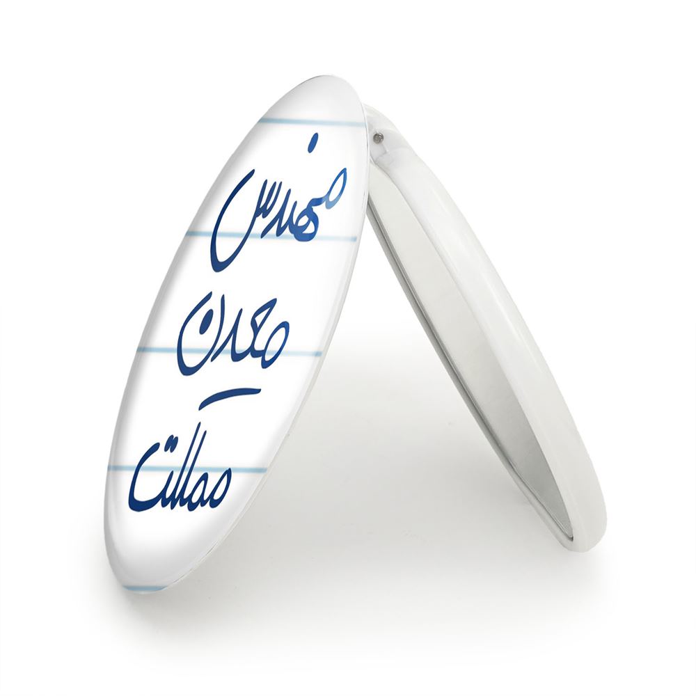 آینه های تاشو مهندس معدن مملکت خندالو، از جنس پلاستیک فشرده ABS تولید شده و به رنگ سفید می باشد. یکی از آینه ها ابعاد واقعی را نشان داده و دیگری با قابلیت بزرگنمایی، جزئیات را بهتر نمایش می دهد. ابعاد هر یک از آینه ها، دایره ای به قطر 7.5 سانت می باشد که نه خیلی بزرگ و غیر قابل استفاده در کیف آرایشی ست و نه خیلی کوچک که تصویر خاصی در آن مشاهده نشود. آینه تاشو مهندس معدن مملکت سایزی استاندارد و کارآمد دارد و در هر کیفی جا میگیرد. چاپ طرح بوسیله چاپگرهای دیجیتال شش رنگ با شفافیت و کیفیتی مثال زدنی بر روی یک وجه از بدنه ی آینه انجام گرفته و با روکش لمینت حرارتی پوشیده شده که در مقابل آسیب و خط و خش مقاوم بوده و کیفیت بالایی دارد. درب آینه بوسیله قفل بدنه ی آن، باز نمی ماند و کاملا بسته می شود و مناسب قرار گیری در کیف لوازم آرایش و کیف های کوچک دستی نیز هست. آینه های تاشو مهندس معدن مملکت خندالو با تنوع طرحی بسیار بالا، سلیقه هر نوع مخاطبی را تامین میکند.