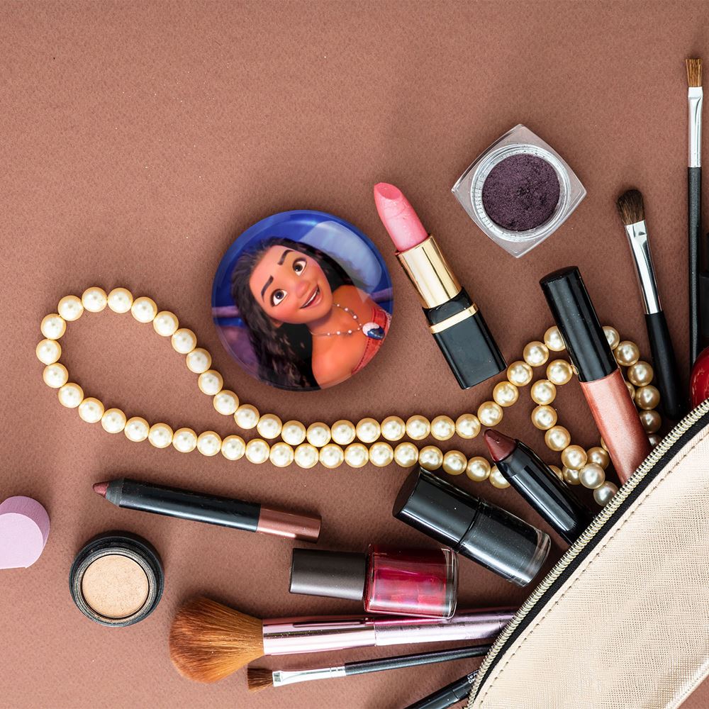 آینه های تاشو موآنا Moana خندالو، از جنس پلاستیک فشرده ABS تولید شده و به رنگ سفید می باشد. یکی از آینه ها ابعاد واقعی را نشان داده و دیگری با قابلیت بزرگنمایی، جزئیات را بهتر نمایش می دهد. ابعاد هر یک از آینه ها، دایره ای به قطر 7.5 سانت می باشد که نه خیلی بزرگ و غیر قابل استفاده در کیف آرایشی ست و نه خیلی کوچک که تصویر خاصی در آن مشاهده نشود. آینه تاشو موآنا Moana سایزی استاندارد و کارآمد دارد و در هر کیفی جا میگیرد. چاپ طرح بوسیله چاپگرهای دیجیتال شش رنگ با شفافیت و کیفیتی مثال زدنی بر روی یک وجه از بدنه ی آینه انجام گرفته و با روکش لمینت حرارتی پوشیده شده که در مقابل آسیب و خط و خش مقاوم بوده و کیفیت بالایی دارد. درب آینه بوسیله قفل بدنه ی آن، باز نمی ماند و کاملا بسته می شود و مناسب قرار گیری در کیف لوازم آرایش و کیف های کوچک دستی نیز هست. آینه های تاشو موآنا Moana خندالو با تنوع طرحی بسیار بالا، سلیقه هر نوع مخاطبی را تامین میکند.
