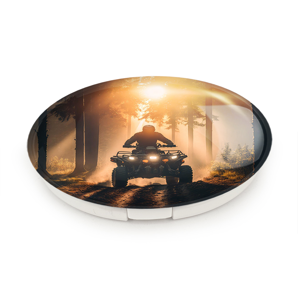 آینه های تاشو موتور چهار چرخ خندالو، از جنس پلاستیک فشرده ABS تولید شده و به رنگ سفید می باشد. یکی از آینه ها ابعاد واقعی را نشان داده و دیگری با قابلیت بزرگنمایی، جزئیات را بهتر نمایش می دهد.