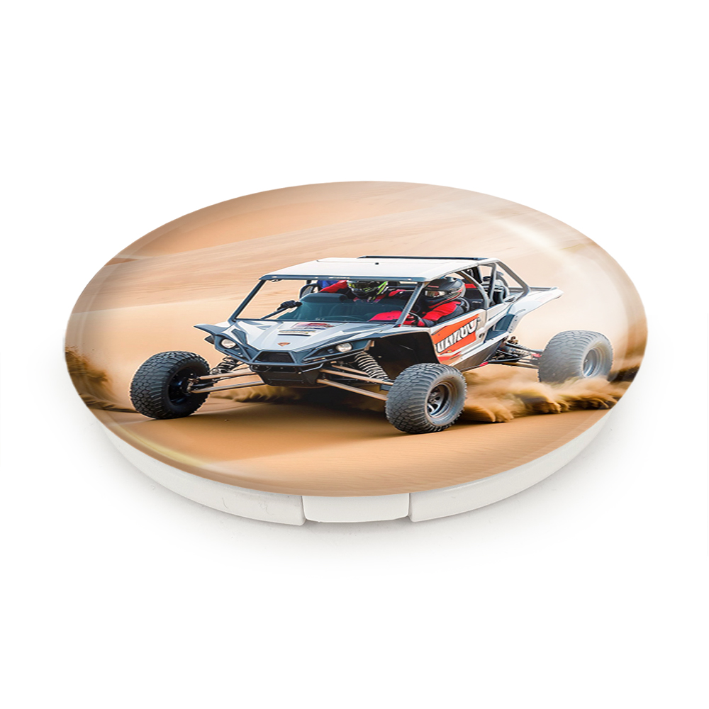 آینه های تاشو موتور چهار چرخ خندالو، از جنس پلاستیک فشرده ABS تولید شده و به رنگ سفید می باشد. یکی از آینه ها ابعاد واقعی را نشان داده و دیگری با قابلیت بزرگنمایی، جزئیات را بهتر نمایش می دهد.