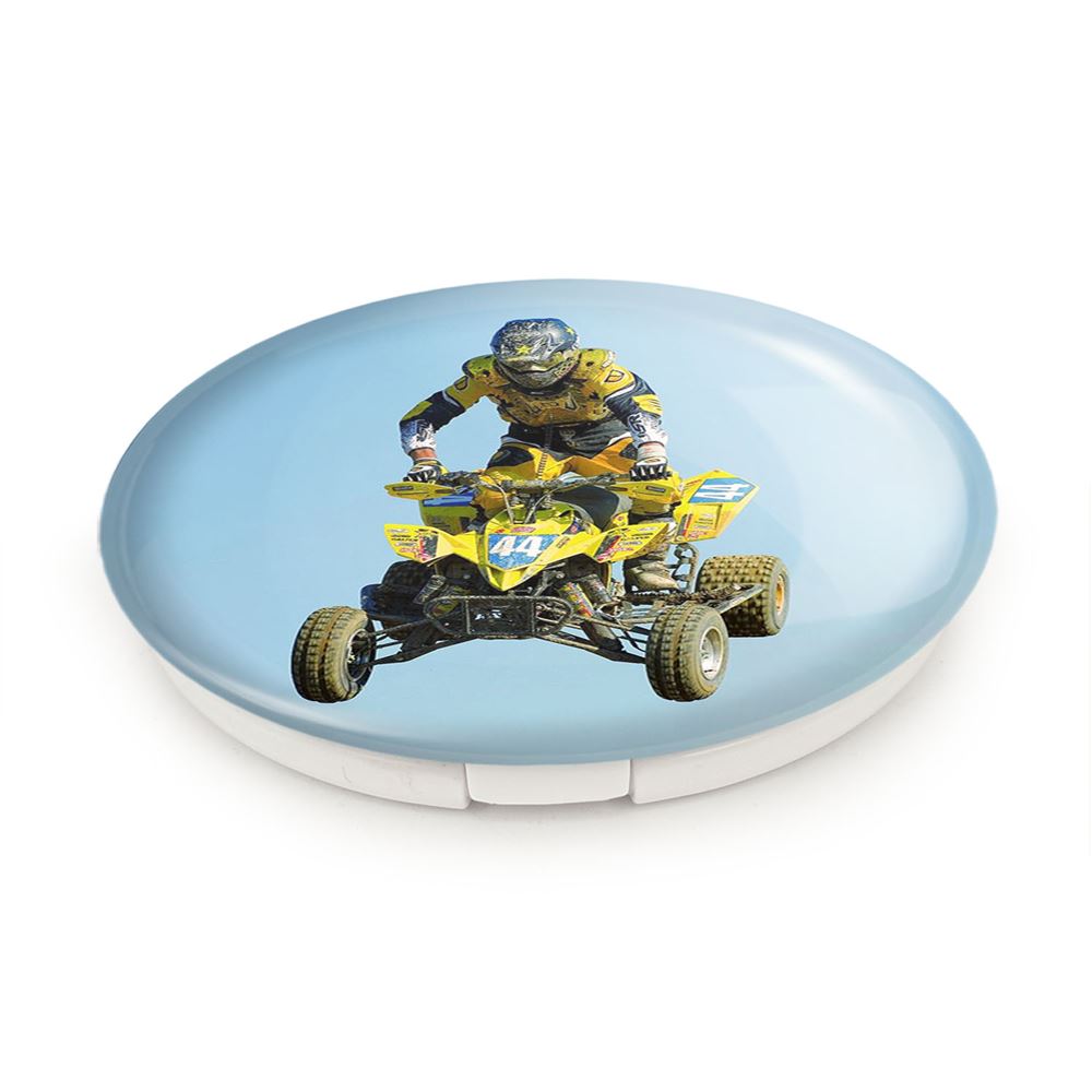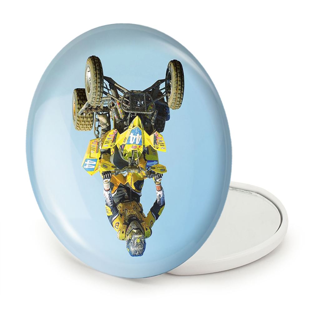 آینه های تاشو موتور چهار چرخ خندالو، از جنس پلاستیک فشرده ABS تولید شده و به رنگ سفید می باشد. یکی از آینه ها ابعاد واقعی را نشان داده و دیگری با قابلیت بزرگنمایی، جزئیات را بهتر نمایش می دهد.