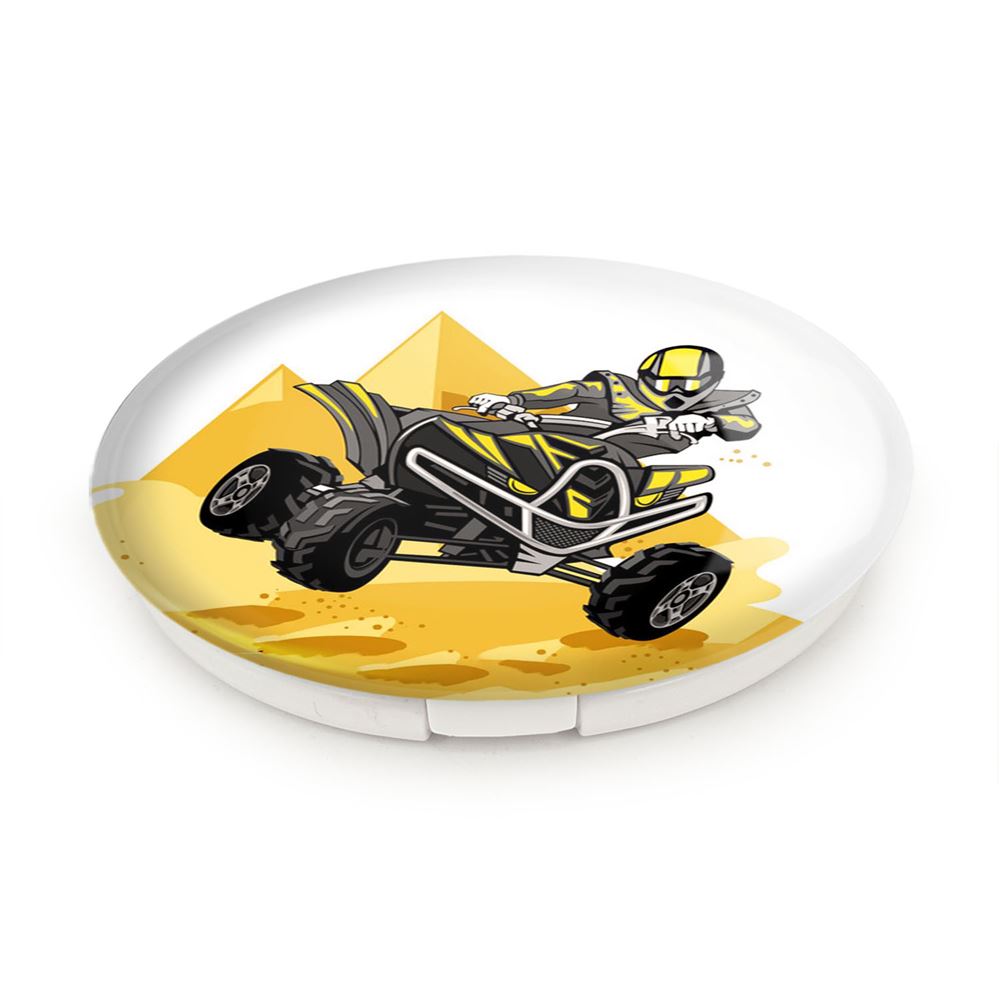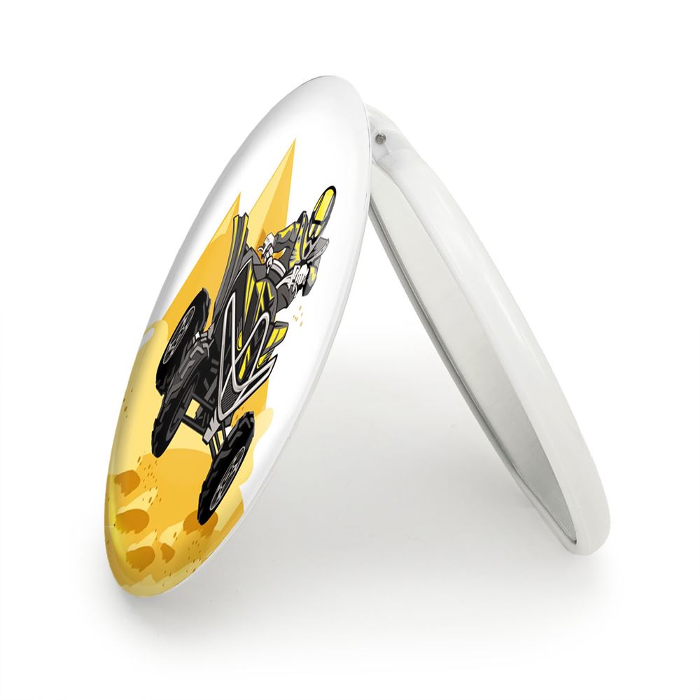 آینه های تاشو موتور چهار چرخ خندالو، از جنس پلاستیک فشرده ABS تولید شده و به رنگ سفید می باشد. یکی از آینه ها ابعاد واقعی را نشان داده و دیگری با قابلیت بزرگنمایی، جزئیات را بهتر نمایش می دهد.