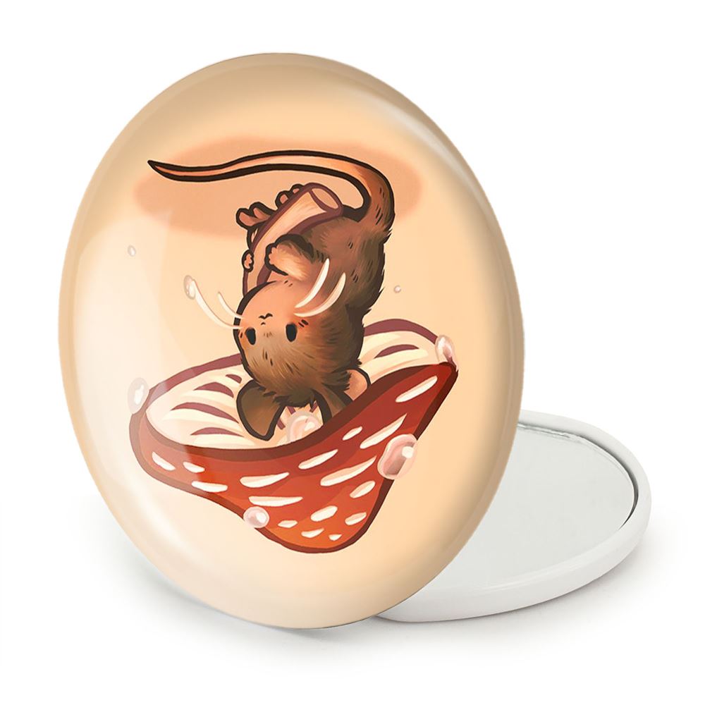 آینه های تاشو موش حیوانات بامزه خندالو، از جنس پلاستیک فشرده ABS تولید شده و به رنگ سفید می باشد. یکی از آینه ها ابعاد واقعی را نشان داده و دیگری با قابلیت بزرگنمایی، جزئیات را بهتر نمایش می دهد. ابعاد هر یک از آینه ها، دایره ای به قطر 7.5 سانت می باشد که نه خیلی بزرگ و غیر قابل استفاده در کیف آرایشی ست و نه خیلی کوچک که تصویر خاصی در آن مشاهده نشود. آینه تاشو موش حیوانات بامزه سایزی استاندارد و کارآمد دارد و در هر کیفی جا میگیرد. چاپ طرح بوسیله چاپگرهای دیجیتال شش رنگ با شفافیت و کیفیتی مثال زدنی بر روی یک وجه از بدنه ی آینه انجام گرفته و با روکش لمینت حرارتی پوشیده شده که در مقابل آسیب و خط و خش مقاوم بوده و کیفیت بالایی دارد. درب آینه بوسیله قفل بدنه ی آن، باز نمی ماند و کاملا بسته می شود و مناسب قرار گیری در کیف لوازم آرایش و کیف های کوچک دستی نیز هست. آینه های تاشو موش حیوانات بامزه خندالو با تنوع طرحی بسیار بالا، سلیقه هر نوع مخاطبی را تامین میکند.