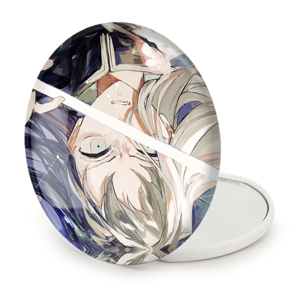 آینه های تاشو مویچیرو توکیتو انیمه شیطان کش خندالو، از جنس پلاستیک فشرده ABS تولید شده و به رنگ سفید می باشد. یکی از آینه ها ابعاد واقعی را نشان داده و دیگری با قابلیت بزرگنمایی، جزئیات را بهتر نمایش می دهد. ابعاد هر یک از آینه ها، دایره ای به قطر 7.5 سانت می باشد که نه خیلی بزرگ و غیر قابل استفاده در کیف آرایشی ست و نه خیلی کوچک که تصویر خاصی در آن مشاهده نشود. آینه تاشو مویچیرو توکیتو انیمه شیطان کش سایزی استاندارد و کارآمد دارد و در هر کیفی جا میگیرد. چاپ طرح بوسیله چاپگرهای دیجیتال شش رنگ با شفافیت و کیفیتی مثال زدنی بر روی یک وجه از بدنه ی آینه انجام گرفته و با روکش لمینت حرارتی پوشیده شده که در مقابل آسیب و خط و خش مقاوم بوده و کیفیت بالایی دارد. درب آینه بوسیله قفل بدنه ی آن، باز نمی ماند و کاملا بسته می شود و مناسب قرار گیری در کیف لوازم آرایش و کیف های کوچک دستی نیز هست. آینه های تاشو مویچیرو توکیتو انیمه شیطان کش خندالو با تنوع طرحی بسیار بالا، سلیقه هر نوع مخاطبی را تامین میکند.