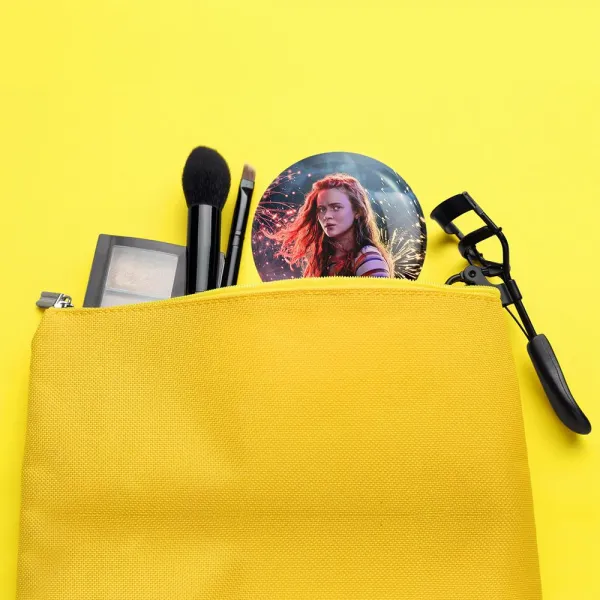 آینه های تاشو مکس استرینجر تینگز Stranger Things خندالو، از جنس پلاستیک فشرده ABS تولید شده و به رنگ سفید می باشد. یکی از آینه ها ابعاد واقعی را نشان داده و دیگری با قابلیت بزرگنمایی، جزئیات را بهتر نمایش می دهد. ابعاد هر یک از آینه ها، دایره ای به قطر 7.5 سانت می باشد که نه خیلی بزرگ و غیر قابل استفاده در کیف آرایشی ست و نه خیلی کوچک که تصویر خاصی در آن مشاهده نشود. آینه تاشو مکس استرینجر تینگز Stranger Things سایزی استاندارد و کارآمد دارد و در هر کیفی جا میگیرد. چاپ طرح بوسیله چاپگرهای دیجیتال شش رنگ با شفافیت و کیفیتی مثال زدنی بر روی یک وجه از بدنه ی آینه انجام گرفته و با روکش لمینت حرارتی پوشیده شده که در مقابل آسیب و خط و خش مقاوم بوده و کیفیت بالایی دارد. درب آینه بوسیله قفل بدنه ی آن، باز نمی ماند و کاملا بسته می شود و مناسب قرار گیری در کیف لوازم آرایش و کیف های کوچک دستی نیز هست. آینه های تاشو مکس استرینجر تینگز Stranger Things خندالو با تنوع طرحی بسیار بالا، سلیقه هر نوع مخاطبی را تامین میکند.