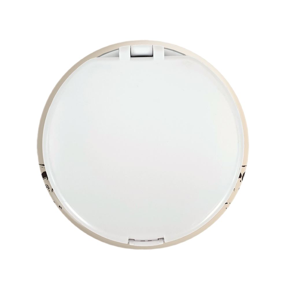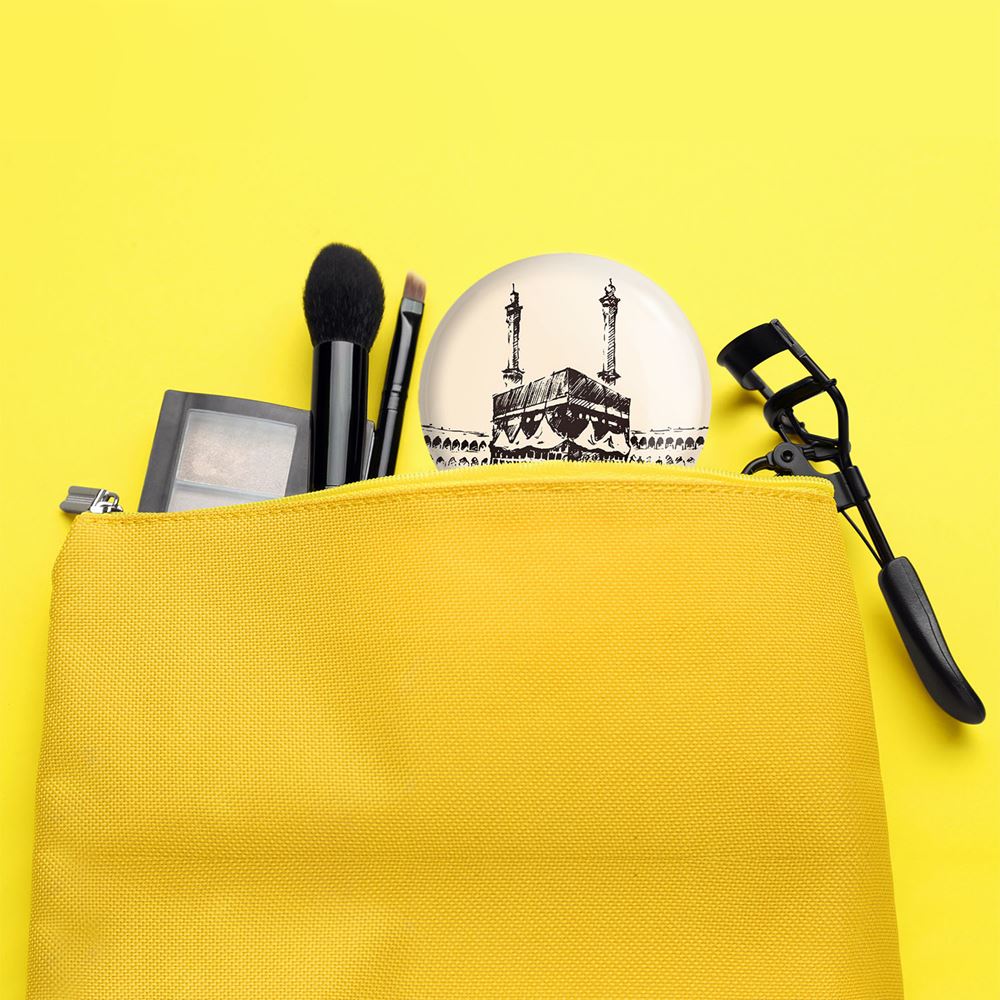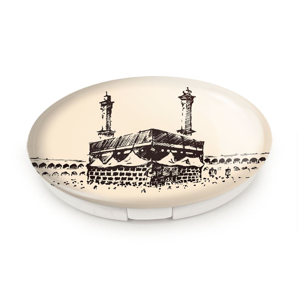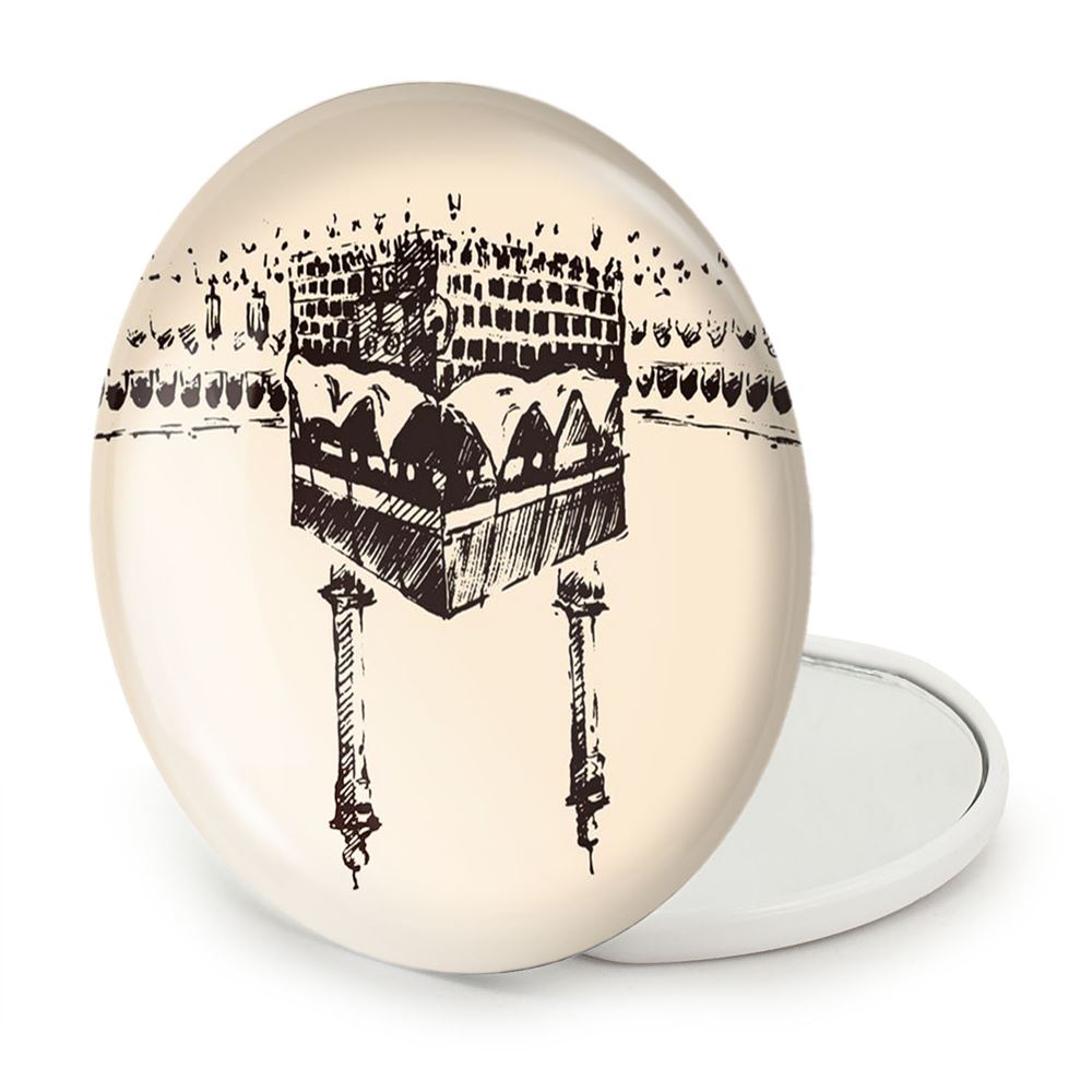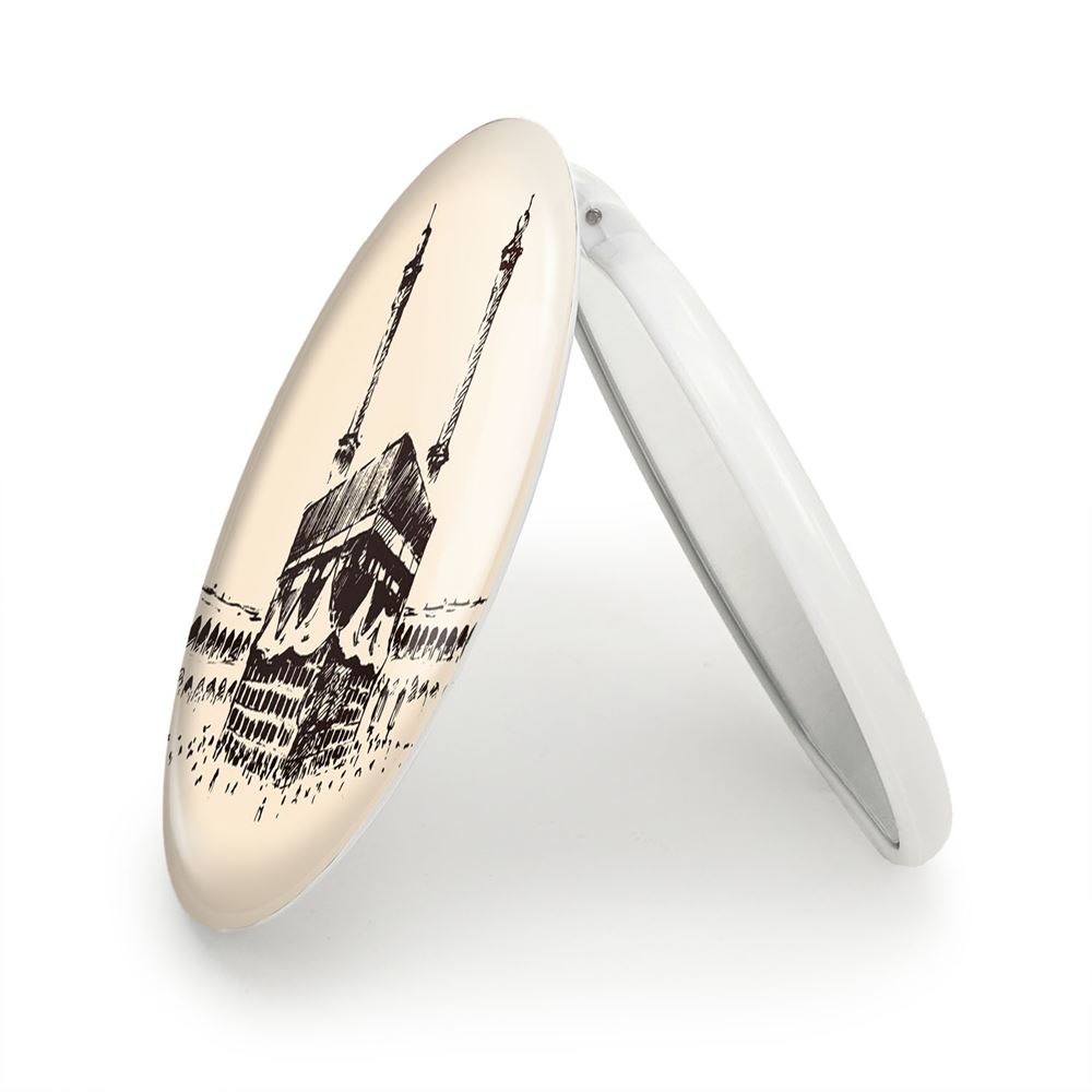 آینه های تاشو مکه خندالو، از جنس پلاستیک فشرده ABS تولید شده و به رنگ سفید می باشد. یکی از آینه ها ابعاد واقعی را نشان داده و دیگری با قابلیت بزرگنمایی، جزئیات را بهتر نمایش می دهد. ابعاد هر یک از آینه ها، دایره ای به قطر 7.5 سانت می باشد که نه خیلی بزرگ و غیر قابل استفاده در کیف آرایشی ست و نه خیلی کوچک که تصویر خاصی در آن مشاهده نشود. آینه تاشو مکه سایزی استاندارد و کارآمد دارد و در هر کیفی جا میگیرد. چاپ طرح بوسیله چاپگرهای دیجیتال شش رنگ با شفافیت و کیفیتی مثال زدنی بر روی یک وجه از بدنه ی آینه انجام گرفته و با روکش لمینت حرارتی پوشیده شده که در مقابل آسیب و خط و خش مقاوم بوده و کیفیت بالایی دارد. درب آینه بوسیله قفل بدنه ی آن، باز نمی ماند و کاملا بسته می شود و مناسب قرار گیری در کیف لوازم آرایش و کیف های کوچک دستی نیز هست. آینه های تاشو مکه خندالو با تنوع طرحی بسیار بالا، سلیقه هر نوع مخاطبی را تامین میکند.