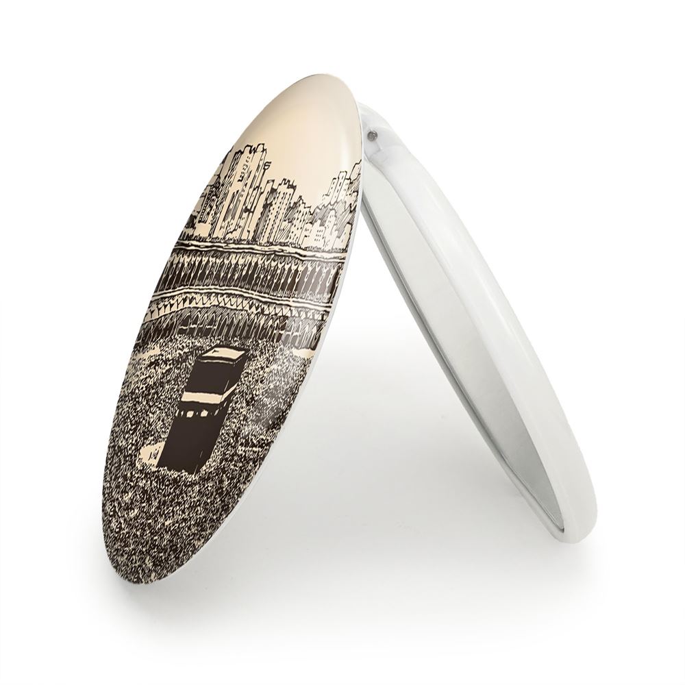 آینه های تاشو مکه خندالو، از جنس پلاستیک فشرده ABS تولید شده و به رنگ سفید می باشد. یکی از آینه ها ابعاد واقعی را نشان داده و دیگری با قابلیت بزرگنمایی، جزئیات را بهتر نمایش می دهد.