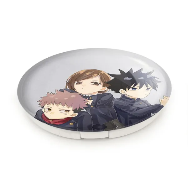 آینه های تاشو مگومی و نوبارا و ایتادوری انیمه جوجوتسو کایزن خندالو، از جنس پلاستیک فشرده ABS تولید شده و به رنگ سفید می باشد. یکی از آینه ها ابعاد واقعی را نشان داده و دیگری با قابلیت بزرگنمایی، جزئیات را بهتر نمایش می دهد. ابعاد هر یک از آینه ها، دایره ای به قطر 7.5 سانت می باشد که نه خیلی بزرگ و غیر قابل استفاده در کیف آرایشی ست و نه خیلی کوچک که تصویر خاصی در آن مشاهده نشود. آینه تاشو مگومی و نوبارا و ایتادوری انیمه جوجوتسو کایزن سایزی استاندارد و کارآمد دارد و در هر کیفی جا میگیرد. چاپ طرح بوسیله چاپگرهای دیجیتال شش رنگ با شفافیت و کیفیتی مثال زدنی بر روی یک وجه از بدنه ی آینه انجام گرفته و با روکش لمینت حرارتی پوشیده شده که در مقابل آسیب و خط و خش مقاوم بوده و کیفیت بالایی دارد. درب آینه بوسیله قفل بدنه ی آن، باز نمی ماند و کاملا بسته می شود و مناسب قرار گیری در کیف لوازم آرایش و کیف های کوچک دستی نیز هست. آینه های تاشو مگومی و نوبارا و ایتادوری انیمه جوجوتسو کایزن خندالو با تنوع طرحی بسیار بالا، سلیقه هر نوع مخاطبی را تامین میکند.