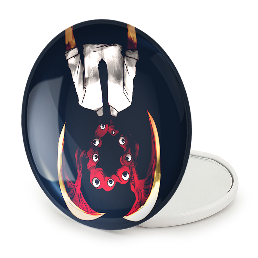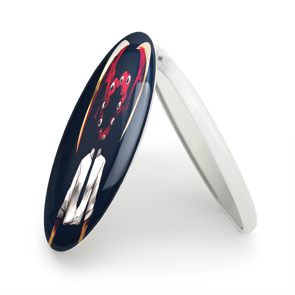 آینه های تاشو میاکو میاکو انیمه انگل خندالو، از جنس پلاستیک فشرده ABS تولید شده و به رنگ سفید می باشد. یکی از آینه ها ابعاد واقعی را نشان داده و دیگری با قابلیت بزرگنمایی، جزئیات را بهتر نمایش می دهد. ابعاد هر یک از آینه ها، دایره ای به قطر 7.5 سانت می باشد که نه خیلی بزرگ و غیر قابل استفاده در کیف آرایشی ست و نه خیلی کوچک که تصویر خاصی در آن مشاهده نشود. آینه تاشو میاکو میاکو انیمه انگل سایزی استاندارد و کارآمد دارد و در هر کیفی جا میگیرد. چاپ طرح بوسیله چاپگرهای دیجیتال شش رنگ با شفافیت و کیفیتی مثال زدنی بر روی یک وجه از بدنه ی آینه انجام گرفته و با روکش لمینت حرارتی پوشیده شده که در مقابل آسیب و خط و خش مقاوم بوده و کیفیت بالایی دارد. درب آینه بوسیله قفل بدنه ی آن، باز نمی ماند و کاملا بسته می شود و مناسب قرار گیری در کیف لوازم آرایش و کیف های کوچک دستی نیز هست. آینه های تاشو میاکو میاکو انیمه انگل خندالو با تنوع طرحی بسیار بالا، سلیقه هر نوع مخاطبی را تامین میکند.