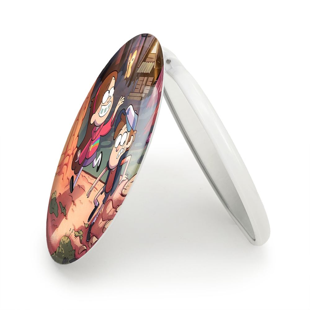 آینه های تاشو میبل و دیپر انیمیشن آبشار جاذبه Gravity Falls خندالو، از جنس پلاستیک فشرده ABS تولید شده و به رنگ سفید می باشد. یکی از آینه ها ابعاد واقعی را نشان داده و دیگری با قابلیت بزرگنمایی، جزئیات را بهتر نمایش می دهد. ابعاد هر یک از آینه ها، دایره ای به قطر 7.5 سانت می باشد که نه خیلی بزرگ و غیر قابل استفاده در کیف آرایشی ست و نه خیلی کوچک که تصویر خاصی در آن مشاهده نشود. آینه تاشو میبل و دیپر انیمیشن آبشار جاذبه Gravity Falls سایزی استاندارد و کارآمد دارد و در هر کیفی جا میگیرد. چاپ طرح بوسیله چاپگرهای دیجیتال شش رنگ با شفافیت و کیفیتی مثال زدنی بر روی یک وجه از بدنه ی آینه انجام گرفته و با روکش لمینت حرارتی پوشیده شده که در مقابل آسیب و خط و خش مقاوم بوده و کیفیت بالایی دارد. درب آینه بوسیله قفل بدنه ی آن، باز نمی ماند و کاملا بسته می شود و مناسب قرار گیری در کیف لوازم آرایش و کیف های کوچک دستی نیز هست. آینه های تاشو میبل و دیپر انیمیشن آبشار جاذبه Gravity Falls خندالو با تنوع طرحی بسیار بالا، سلیقه هر نوع مخاطبی را تامین میکند.