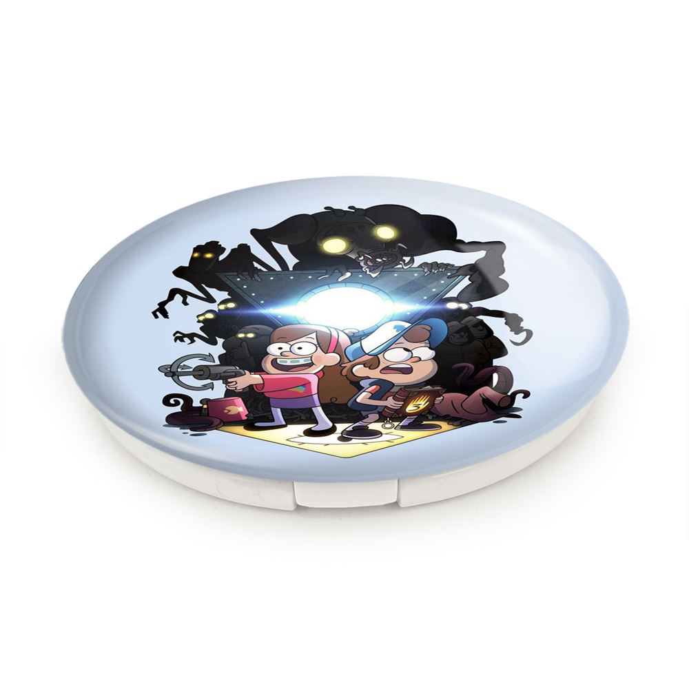 آینه های تاشو میبل و دیپر انیمیشن آبشار جاذبه Gravity Falls خندالو، از جنس پلاستیک فشرده ABS تولید شده و به رنگ سفید می باشد. یکی از آینه ها ابعاد واقعی را نشان داده و دیگری با قابلیت بزرگنمایی، جزئیات را بهتر نمایش می دهد. ابعاد هر یک از آینه ها، دایره ای به قطر 7.5 سانت می باشد که نه خیلی بزرگ و غیر قابل استفاده در کیف آرایشی ست و نه خیلی کوچک که تصویر خاصی در آن مشاهده نشود. آینه تاشو میبل و دیپر انیمیشن آبشار جاذبه Gravity Falls سایزی استاندارد و کارآمد دارد و در هر کیفی جا میگیرد. چاپ طرح بوسیله چاپگرهای دیجیتال شش رنگ با شفافیت و کیفیتی مثال زدنی بر روی یک وجه از بدنه ی آینه انجام گرفته و با روکش لمینت حرارتی پوشیده شده که در مقابل آسیب و خط و خش مقاوم بوده و کیفیت بالایی دارد. درب آینه بوسیله قفل بدنه ی آن، باز نمی ماند و کاملا بسته می شود و مناسب قرار گیری در کیف لوازم آرایش و کیف های کوچک دستی نیز هست. آینه های تاشو میبل و دیپر انیمیشن آبشار جاذبه Gravity Falls خندالو با تنوع طرحی بسیار بالا، سلیقه هر نوع مخاطبی را تامین میکند.