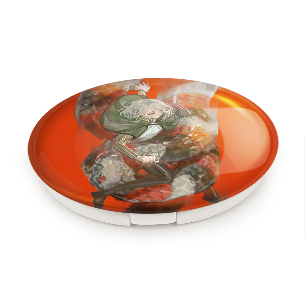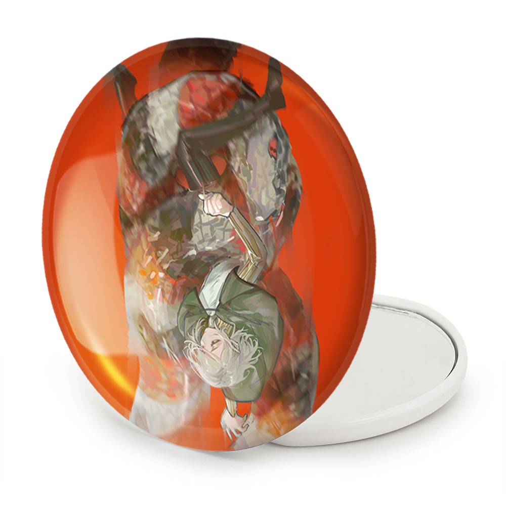 آینه های تاشو میثرون انیمه خوشمزه در سیاه چال خندالو، از جنس پلاستیک فشرده ABS تولید شده و به رنگ سفید می باشد. یکی از آینه ها ابعاد واقعی را نشان داده و دیگری با قابلیت بزرگنمایی، جزئیات را بهتر نمایش می دهد. ابعاد هر یک از آینه ها، دایره ای به قطر 7.5 سانت می باشد که نه خیلی بزرگ و غیر قابل استفاده در کیف آرایشی ست و نه خیلی کوچک که تصویر خاصی در آن مشاهده نشود. آینه تاشو میثرون انیمه خوشمزه در سیاه چال سایزی استاندارد و کارآمد دارد و در هر کیفی جا میگیرد. چاپ طرح بوسیله چاپگرهای دیجیتال شش رنگ با شفافیت و کیفیتی مثال زدنی بر روی یک وجه از بدنه ی آینه انجام گرفته و با روکش لمینت حرارتی پوشیده شده که در مقابل آسیب و خط و خش مقاوم بوده و کیفیت بالایی دارد. درب آینه بوسیله قفل بدنه ی آن، باز نمی ماند و کاملا بسته می شود و مناسب قرار گیری در کیف لوازم آرایش و کیف های کوچک دستی نیز هست. آینه های تاشو میثرون انیمه خوشمزه در سیاه چال خندالو با تنوع طرحی بسیار بالا، سلیقه هر نوع مخاطبی را تامین میکند.