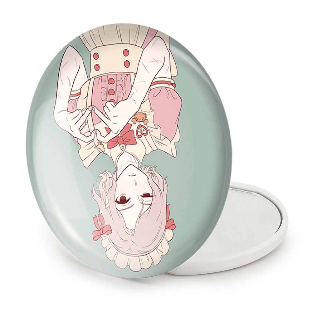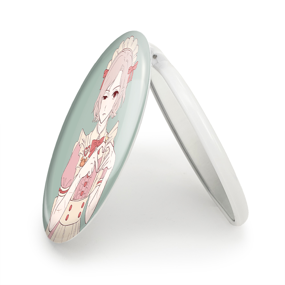 آینه های تاشو میثرون انیمه خوشمزه در سیاه چال خندالو، از جنس پلاستیک فشرده ABS تولید شده و به رنگ سفید می باشد. یکی از آینه ها ابعاد واقعی را نشان داده و دیگری با قابلیت بزرگنمایی، جزئیات را بهتر نمایش می دهد. ابعاد هر یک از آینه ها، دایره ای به قطر 7.5 سانت می باشد که نه خیلی بزرگ و غیر قابل استفاده در کیف آرایشی ست و نه خیلی کوچک که تصویر خاصی در آن مشاهده نشود. آینه تاشو میثرون انیمه خوشمزه در سیاه چال سایزی استاندارد و کارآمد دارد و در هر کیفی جا میگیرد. چاپ طرح بوسیله چاپگرهای دیجیتال شش رنگ با شفافیت و کیفیتی مثال زدنی بر روی یک وجه از بدنه ی آینه انجام گرفته و با روکش لمینت حرارتی پوشیده شده که در مقابل آسیب و خط و خش مقاوم بوده و کیفیت بالایی دارد. درب آینه بوسیله قفل بدنه ی آن، باز نمی ماند و کاملا بسته می شود و مناسب قرار گیری در کیف لوازم آرایش و کیف های کوچک دستی نیز هست. آینه های تاشو میثرون انیمه خوشمزه در سیاه چال خندالو با تنوع طرحی بسیار بالا، سلیقه هر نوع مخاطبی را تامین میکند.