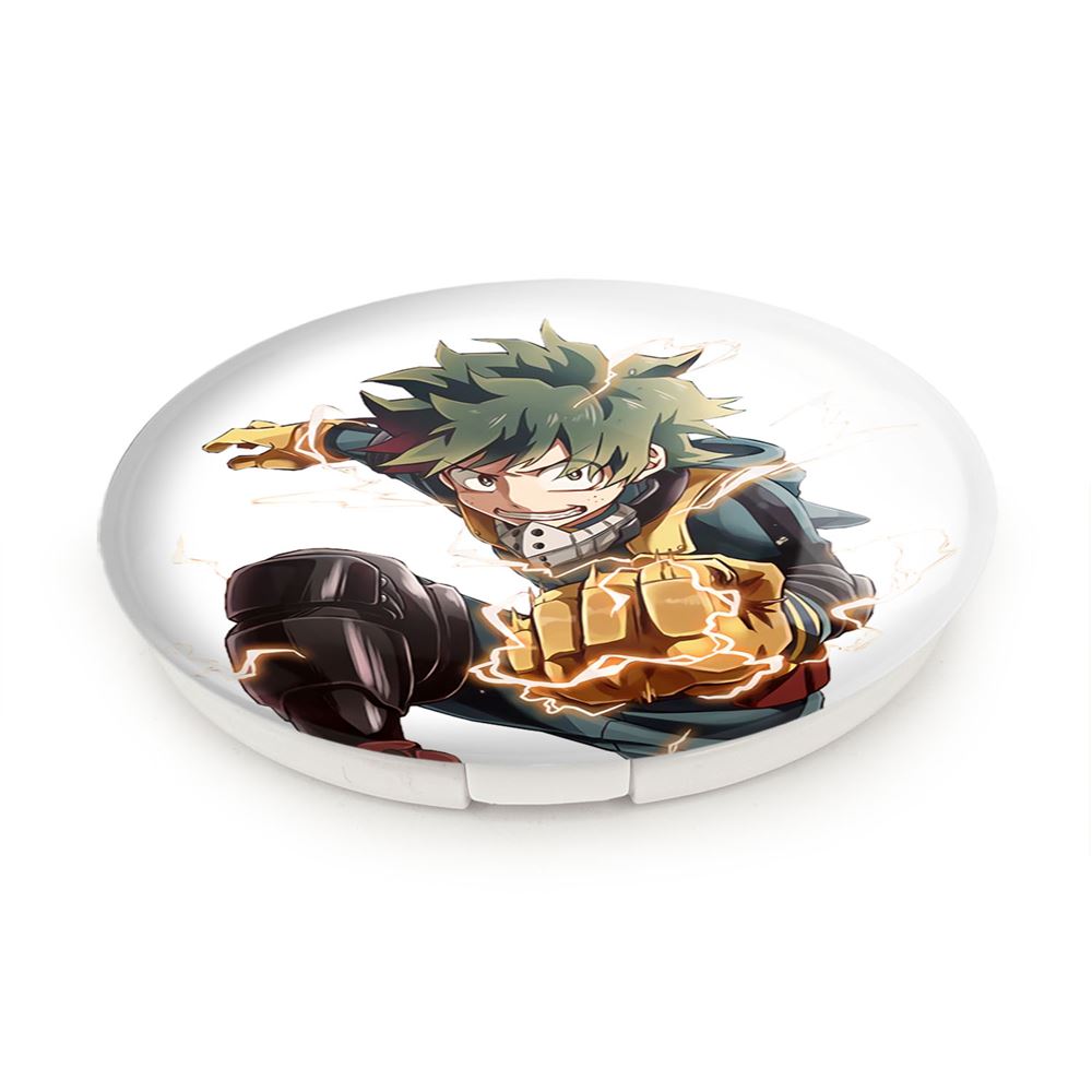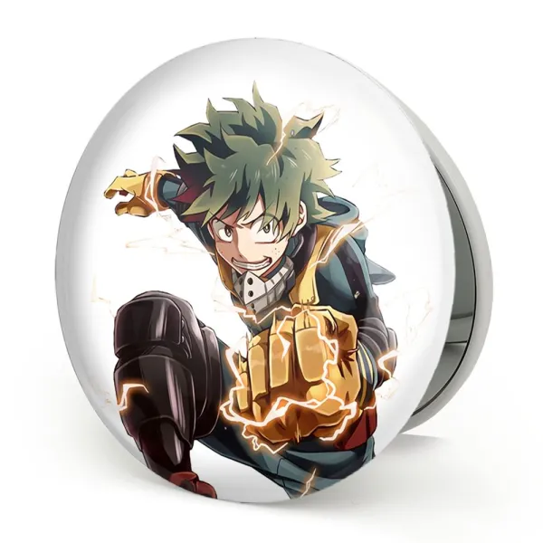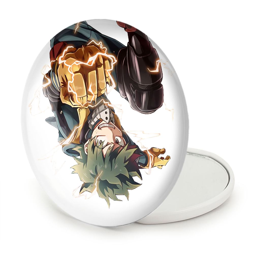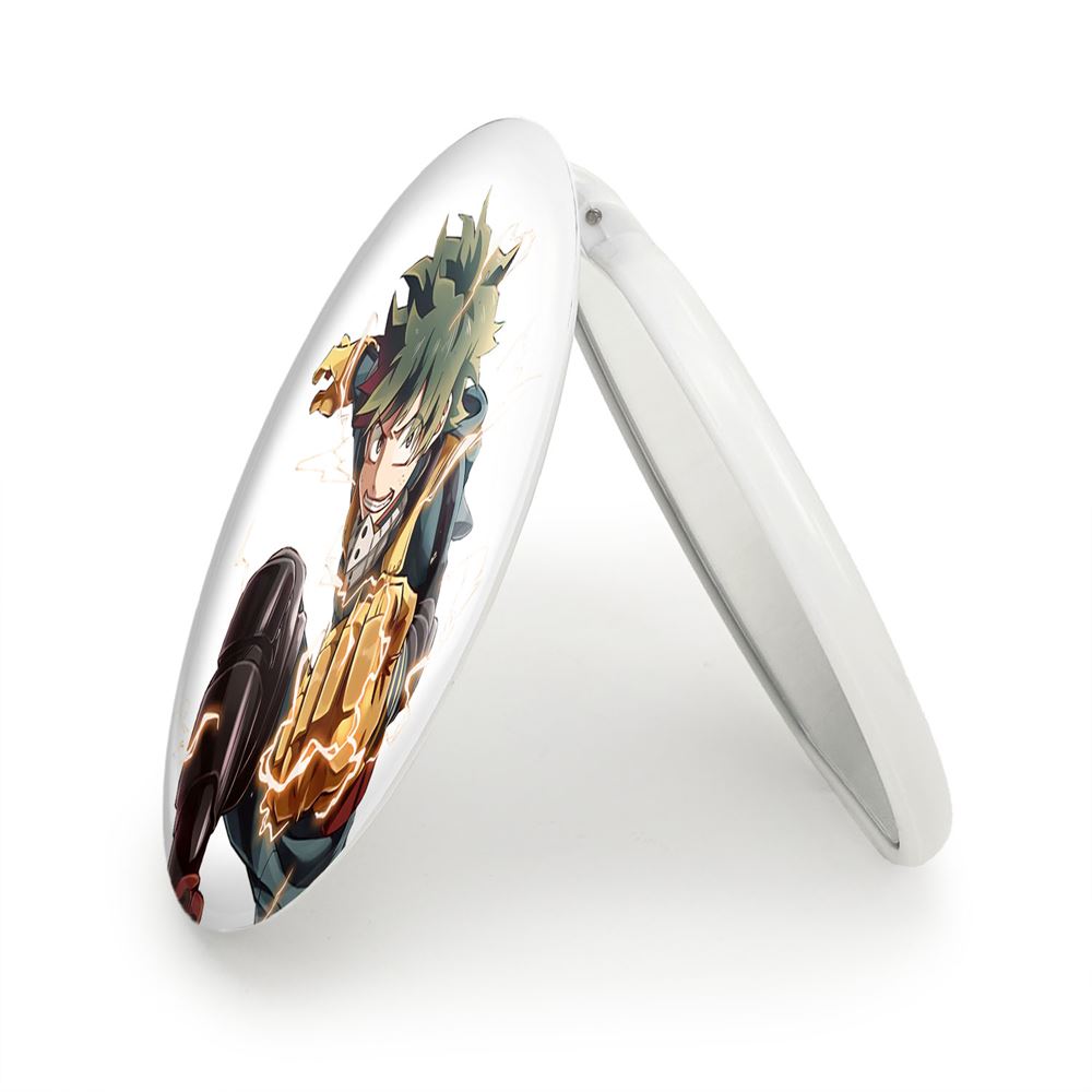 آینه های تاشو میدوریا ایزوکو انیمه آکادمی قهرمان من خندالو، از جنس پلاستیک فشرده ABS تولید شده و به رنگ سفید می باشد. یکی از آینه ها ابعاد واقعی را نشان داده و دیگری با قابلیت بزرگنمایی، جزئیات را بهتر نمایش می دهد. ابعاد هر یک از آینه ها، دایره ای به قطر 7.5 سانت می باشد که نه خیلی بزرگ و غیر قابل استفاده در کیف آرایشی ست و نه خیلی کوچک که تصویر خاصی در آن مشاهده نشود. آینه تاشو میدوریا ایزوکو انیمه آکادمی قهرمان من سایزی استاندارد و کارآمد دارد و در هر کیفی جا میگیرد. چاپ طرح بوسیله چاپگرهای دیجیتال شش رنگ با شفافیت و کیفیتی مثال زدنی بر روی یک وجه از بدنه ی آینه انجام گرفته و با روکش لمینت حرارتی پوشیده شده که در مقابل آسیب و خط و خش مقاوم بوده و کیفیت بالایی دارد. درب آینه بوسیله قفل بدنه ی آن، باز نمی ماند و کاملا بسته می شود و مناسب قرار گیری در کیف لوازم آرایش و کیف های کوچک دستی نیز هست. آینه های تاشو میدوریا ایزوکو انیمه آکادمی قهرمان من خندالو با تنوع طرحی بسیار بالا، سلیقه هر نوع مخاطبی را تامین میکند.