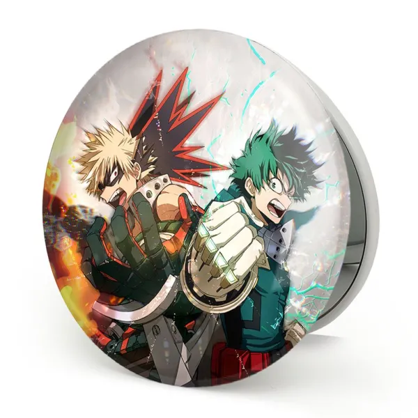 آینه های تاشو میدوریا و باکوگو انیمه آکادمی قهرمان من خندالو، از جنس پلاستیک فشرده ABS تولید شده و به رنگ سفید می باشد. یکی از آینه ها ابعاد واقعی را نشان داده و دیگری با قابلیت بزرگنمایی، جزئیات را بهتر نمایش می دهد. ابعاد هر یک از آینه ها، دایره ای به قطر 7.5 سانت می باشد که نه خیلی بزرگ و غیر قابل استفاده در کیف آرایشی ست و نه خیلی کوچک که تصویر خاصی در آن مشاهده نشود. آینه تاشو میدوریا و باکوگو انیمه آکادمی قهرمان من سایزی استاندارد و کارآمد دارد و در هر کیفی جا میگیرد. چاپ طرح بوسیله چاپگرهای دیجیتال شش رنگ با شفافیت و کیفیتی مثال زدنی بر روی یک وجه از بدنه ی آینه انجام گرفته و با روکش لمینت حرارتی پوشیده شده که در مقابل آسیب و خط و خش مقاوم بوده و کیفیت بالایی دارد. درب آینه بوسیله قفل بدنه ی آن، باز نمی ماند و کاملا بسته می شود و مناسب قرار گیری در کیف لوازم آرایش و کیف های کوچک دستی نیز هست. آینه های تاشو میدوریا و باکوگو انیمه آکادمی قهرمان من خندالو با تنوع طرحی بسیار بالا، سلیقه هر نوع مخاطبی را تامین میکند.