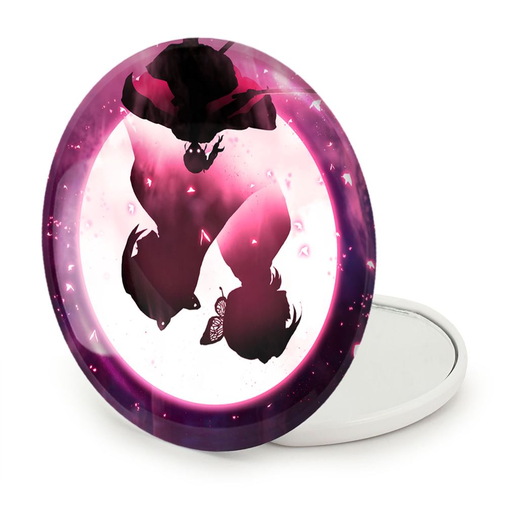 آینه های تاشو میسوری انیمه شیطان کش خندالو، از جنس پلاستیک فشرده ABS تولید شده و به رنگ سفید می باشد. یکی از آینه ها ابعاد واقعی را نشان داده و دیگری با قابلیت بزرگنمایی، جزئیات را بهتر نمایش می دهد. ابعاد هر یک از آینه ها، دایره ای به قطر 7.5 سانت می باشد که نه خیلی بزرگ و غیر قابل استفاده در کیف آرایشی ست و نه خیلی کوچک که تصویر خاصی در آن مشاهده نشود. آینه تاشو میسوری انیمه شیطان کش سایزی استاندارد و کارآمد دارد و در هر کیفی جا میگیرد. چاپ طرح بوسیله چاپگرهای دیجیتال شش رنگ با شفافیت و کیفیتی مثال زدنی بر روی یک وجه از بدنه ی آینه انجام گرفته و با روکش لمینت حرارتی پوشیده شده که در مقابل آسیب و خط و خش مقاوم بوده و کیفیت بالایی دارد. درب آینه بوسیله قفل بدنه ی آن، باز نمی ماند و کاملا بسته می شود و مناسب قرار گیری در کیف لوازم آرایش و کیف های کوچک دستی نیز هست. آینه های تاشو میسوری انیمه شیطان کش خندالو با تنوع طرحی بسیار بالا، سلیقه هر نوع مخاطبی را تامین میکند.