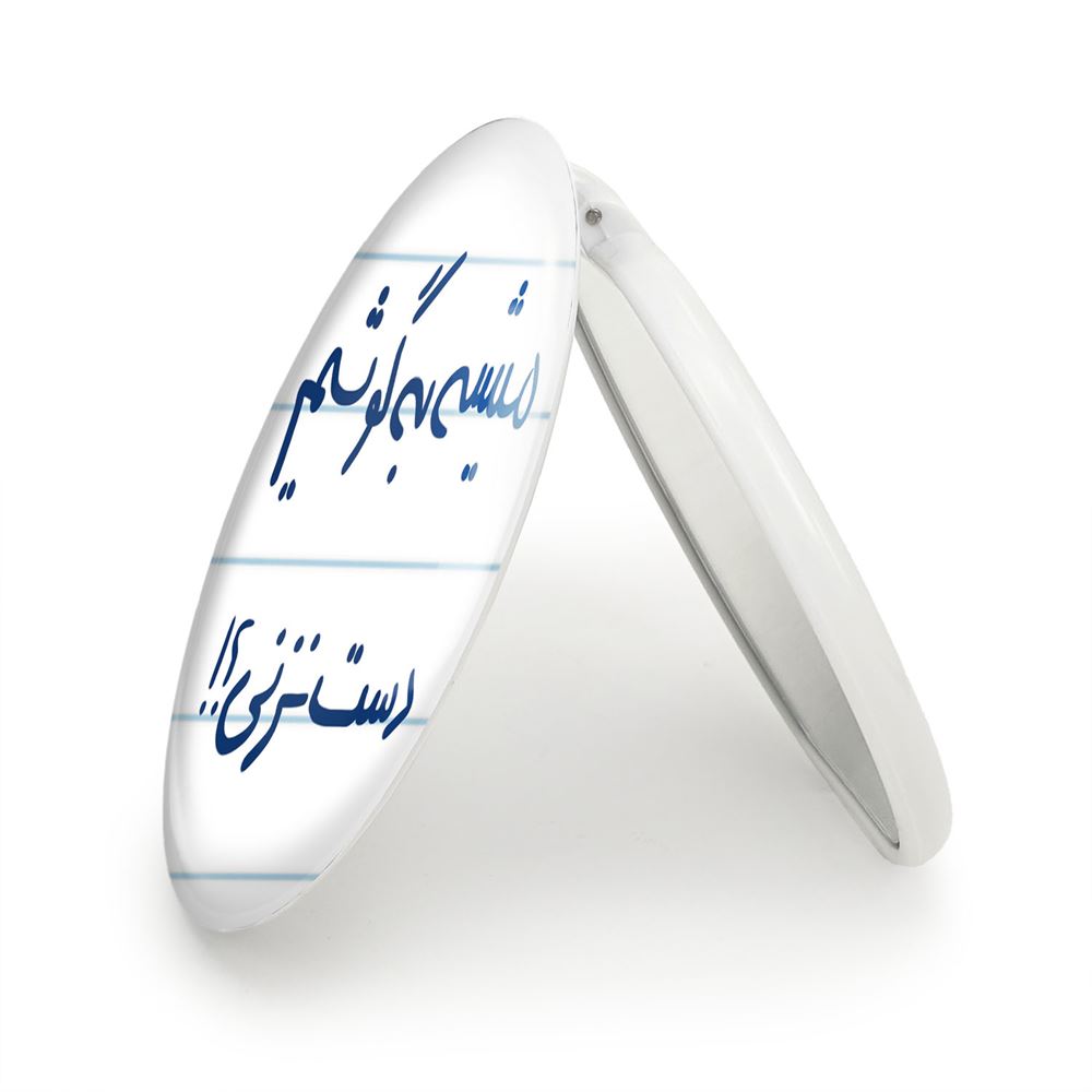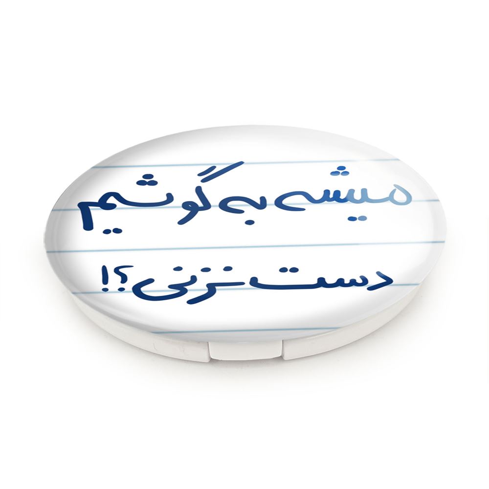آینه های تاشو میشه به گوشیم دست نزنی؟ خندالو، از جنس پلاستیک فشرده ABS تولید شده و به رنگ سفید می باشد. یکی از آینه ها ابعاد واقعی را نشان داده و دیگری با قابلیت بزرگنمایی، جزئیات را بهتر نمایش می دهد. ابعاد هر یک از آینه ها، دایره ای به قطر 7.5 سانت می باشد که نه خیلی بزرگ و غیر قابل استفاده در کیف آرایشی ست و نه خیلی کوچک که تصویر خاصی در آن مشاهده نشود. آینه تاشو میشه به گوشیم دست نزنی؟ سایزی استاندارد و کارآمد دارد و در هر کیفی جا میگیرد. چاپ طرح بوسیله چاپگرهای دیجیتال شش رنگ با شفافیت و کیفیتی مثال زدنی بر روی یک وجه از بدنه ی آینه انجام گرفته و با روکش لمینت حرارتی پوشیده شده که در مقابل آسیب و خط و خش مقاوم بوده و کیفیت بالایی دارد. درب آینه بوسیله قفل بدنه ی آن، باز نمی ماند و کاملا بسته می شود و مناسب قرار گیری در کیف لوازم آرایش و کیف های کوچک دستی نیز هست. آینه های تاشو میشه به گوشیم دست نزنی؟ خندالو با تنوع طرحی بسیار بالا، سلیقه هر نوع مخاطبی را تامین میکند.