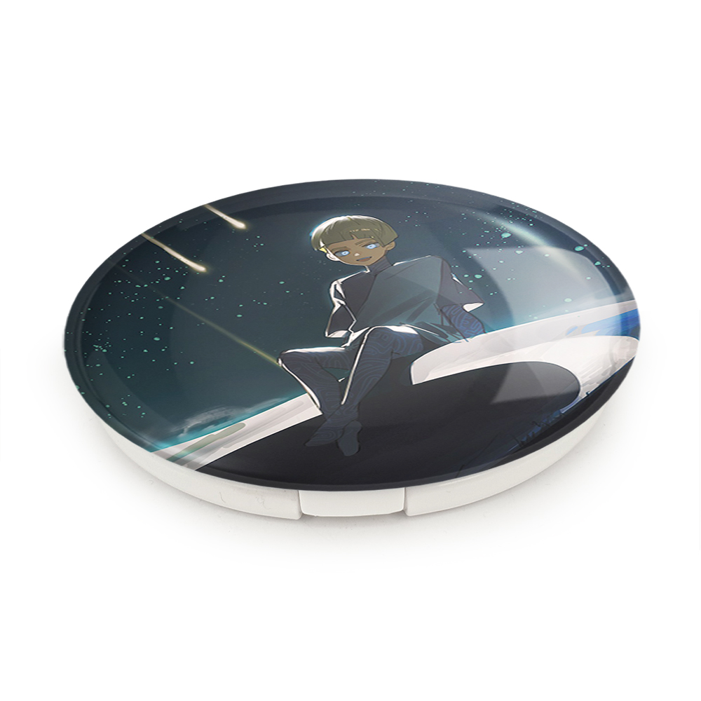 آینه های تاشو میلینز انیمه تریگان (Trigun) خندالو، از جنس پلاستیک فشرده ABS تولید شده و به رنگ سفید می باشد. یکی از آینه ها ابعاد واقعی را نشان داده و دیگری با قابلیت بزرگنمایی، جزئیات را بهتر نمایش می دهد. ابعاد هر یک از آینه ها، دایره ای به قطر 7.5 سانت می باشد که نه خیلی بزرگ و غیر قابل استفاده در کیف آرایشی ست و نه خیلی کوچک که تصویر خاصی در آن مشاهده نشود. آینه تاشو میلینز انیمه تریگان (Trigun) سایزی استاندارد و کارآمد دارد و در هر کیفی جا میگیرد. چاپ طرح بوسیله چاپگرهای دیجیتال شش رنگ با شفافیت و کیفیتی مثال زدنی بر روی یک وجه از بدنه ی آینه انجام گرفته و با روکش لمینت حرارتی پوشیده شده که در مقابل آسیب و خط و خش مقاوم بوده و کیفیت بالایی دارد. درب آینه بوسیله قفل بدنه ی آن، باز نمی ماند و کاملا بسته می شود و مناسب قرار گیری در کیف لوازم آرایش و کیف های کوچک دستی نیز هست. آینه های تاشو میلینز انیمه تریگان (Trigun) خندالو با تنوع طرحی بسیار بالا، سلیقه هر نوع مخاطبی را تامین میکند.