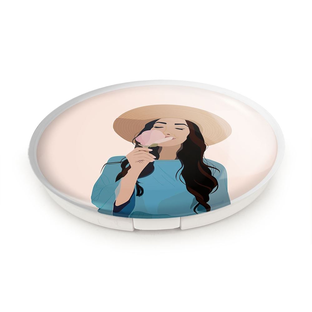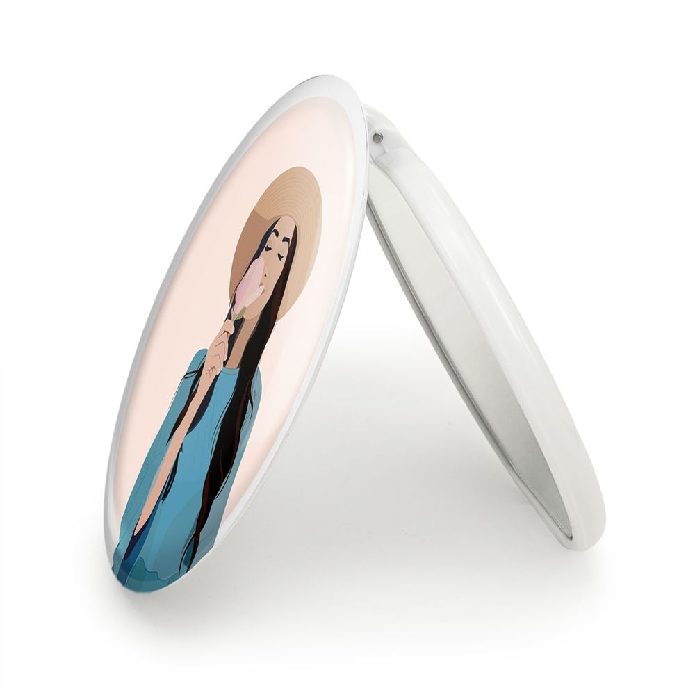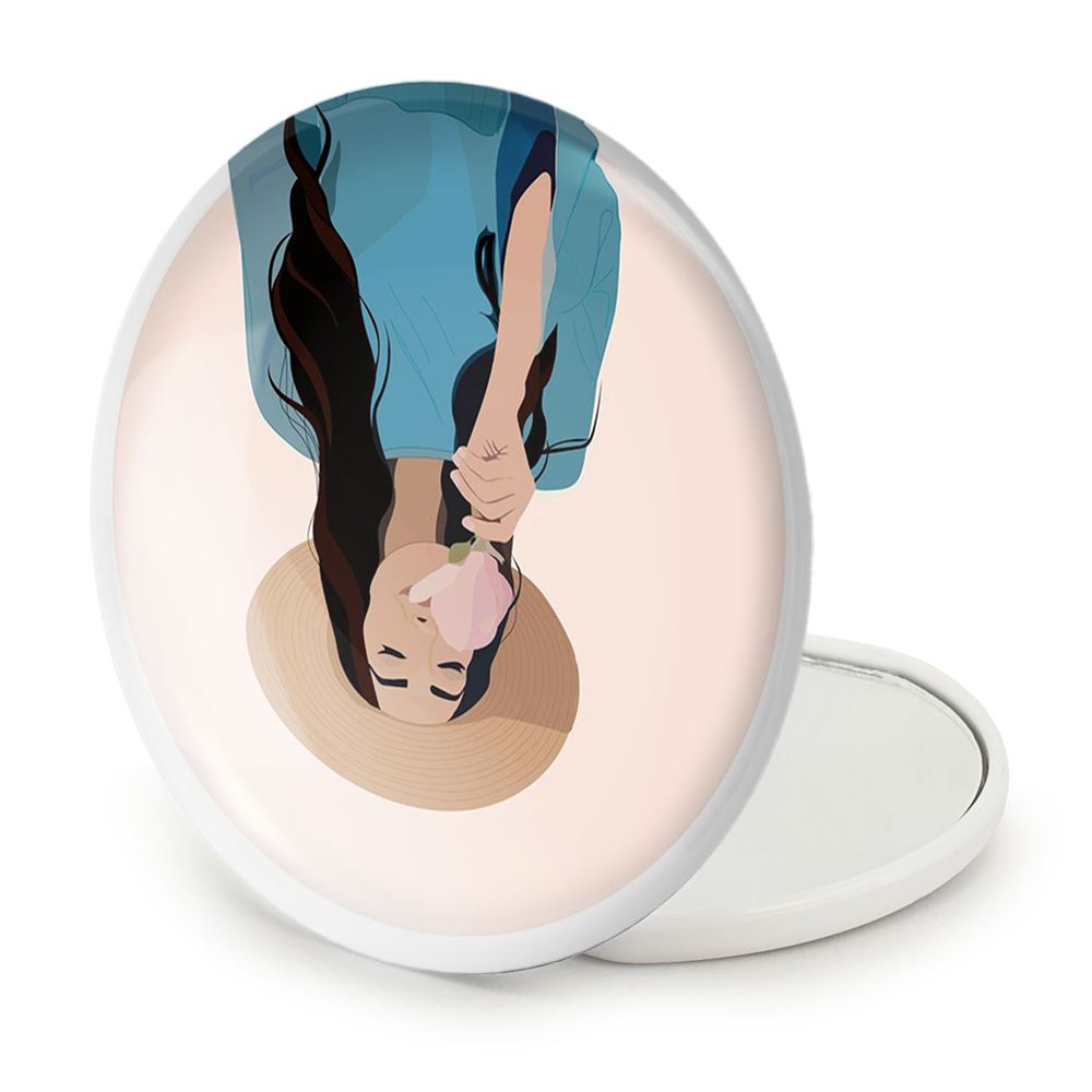 آینه های تاشو مینیمال دخترانه خندالو، از جنس پلاستیک فشرده ABS تولید شده و به رنگ سفید می باشد. یکی از آینه ها ابعاد واقعی را نشان داده و دیگری با قابلیت بزرگنمایی، جزئیات را بهتر نمایش می دهد. ابعاد هر یک از آینه ها، دایره ای به قطر 7.5 سانت می باشد که نه خیلی بزرگ و غیر قابل استفاده در کیف آرایشی ست و نه خیلی کوچک که تصویر خاصی در آن مشاهده نشود. آینه تاشو مینیمال دخترانه سایزی استاندارد و کارآمد دارد و در هر کیفی جا میگیرد. چاپ طرح بوسیله چاپگرهای دیجیتال شش رنگ با شفافیت و کیفیتی مثال زدنی بر روی یک وجه از بدنه ی آینه انجام گرفته و با روکش لمینت حرارتی پوشیده شده که در مقابل آسیب و خط و خش مقاوم بوده و کیفیت بالایی دارد. درب آینه بوسیله قفل بدنه ی آن، باز نمی ماند و کاملا بسته می شود و مناسب قرار گیری در کیف لوازم آرایش و کیف های کوچک دستی نیز هست. آینه های تاشو مینیمال دخترانه خندالو با تنوع طرحی بسیار بالا، سلیقه هر نوع مخاطبی را تامین میکند.