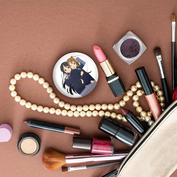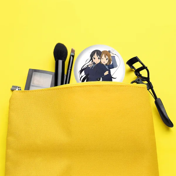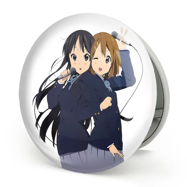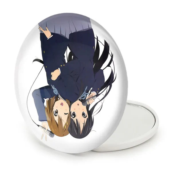 آینه های تاشو میو و یویی انیمه كي اون خندالو، از جنس پلاستیک فشرده ABS تولید شده و به رنگ سفید می باشد. یکی از آینه ها ابعاد واقعی را نشان داده و دیگری با قابلیت بزرگنمایی، جزئیات را بهتر نمایش می دهد. ابعاد هر یک از آینه ها، دایره ای به قطر 7.5 سانت می باشد که نه خیلی بزرگ و غیر قابل استفاده در کیف آرایشی ست و نه خیلی کوچک که تصویر خاصی در آن مشاهده نشود. آینه تاشو میو و یویی انیمه كي اون سایزی استاندارد و کارآمد دارد و در هر کیفی جا میگیرد. چاپ طرح بوسیله چاپگرهای دیجیتال شش رنگ با شفافیت و کیفیتی مثال زدنی بر روی یک وجه از بدنه ی آینه انجام گرفته و با روکش لمینت حرارتی پوشیده شده که در مقابل آسیب و خط و خش مقاوم بوده و کیفیت بالایی دارد. درب آینه بوسیله قفل بدنه ی آن، باز نمی ماند و کاملا بسته می شود و مناسب قرار گیری در کیف لوازم آرایش و کیف های کوچک دستی نیز هست. آینه های تاشو میو و یویی انیمه كي اون خندالو با تنوع طرحی بسیار بالا، سلیقه هر نوع مخاطبی را تامین میکند.