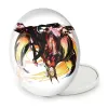 آینه های تاشو میکو انیمه نو گیم نو لایف خندالو، از جنس پلاستیک فشرده ABS تولید شده و به رنگ سفید می باشد. یکی از آینه ها ابعاد واقعی را نشان داده و دیگری با قابلیت بزرگنمایی، جزئیات را بهتر نمایش می دهد. ابعاد هر یک از آینه ها، دایره ای به قطر 7.5 سانت می باشد که نه خیلی بزرگ و غیر قابل استفاده در کیف آرایشی ست و نه خیلی کوچک که تصویر خاصی در آن مشاهده نشود. آینه تاشو میکو انیمه نو گیم نو لایف سایزی استاندارد و کارآمد دارد و در هر کیفی جا میگیرد. چاپ طرح بوسیله چاپگرهای دیجیتال شش رنگ با شفافیت و کیفیتی مثال زدنی بر روی یک وجه از بدنه ی آینه انجام گرفته و با روکش لمینت حرارتی پوشیده شده که در مقابل آسیب و خط و خش مقاوم بوده و کیفیت بالایی دارد. درب آینه بوسیله قفل بدنه ی آن، باز نمی ماند و کاملا بسته می شود و مناسب قرار گیری در کیف لوازم آرایش و کیف های کوچک دستی نیز هست. آینه های تاشو میکو انیمه نو گیم نو لایف خندالو با تنوع طرحی بسیار بالا، سلیقه هر نوع مخاطبی را تامین میکند.
