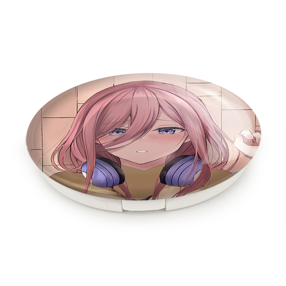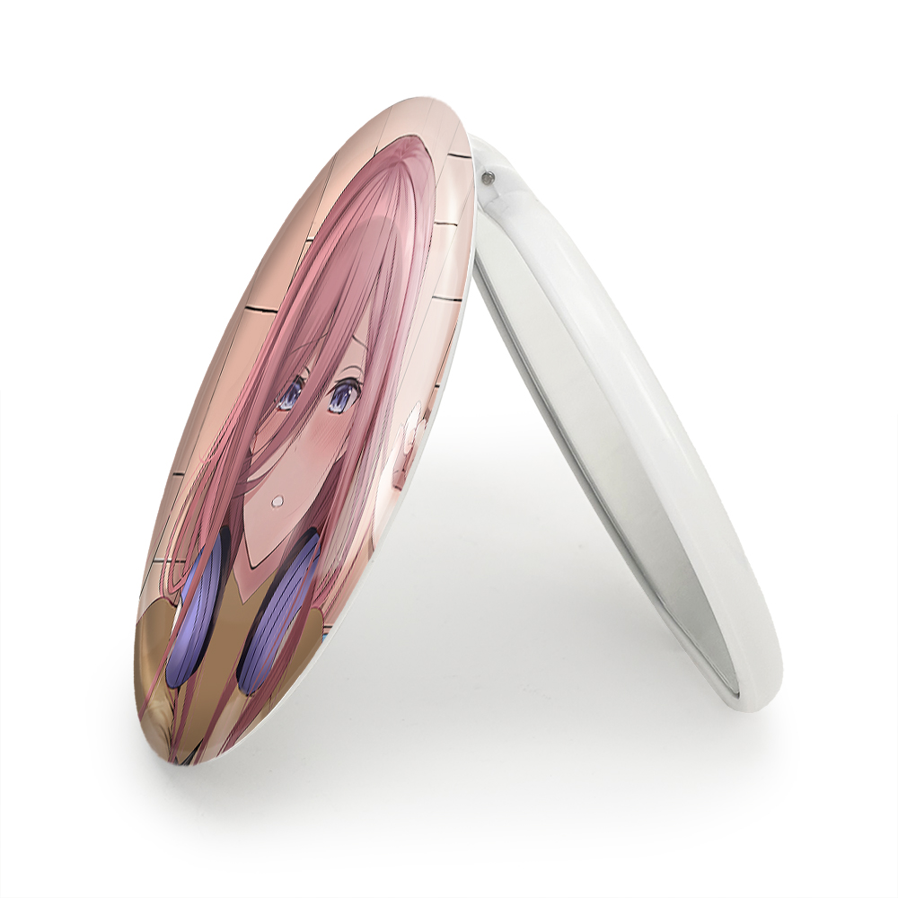 آینه های تاشو میکو انیمه پنج عروس مساوی خندالو، از جنس پلاستیک فشرده ABS تولید شده و به رنگ سفید می باشد. یکی از آینه ها ابعاد واقعی را نشان داده و دیگری با قابلیت بزرگنمایی، جزئیات را بهتر نمایش می دهد. ابعاد هر یک از آینه ها، دایره ای به قطر 7.5 سانت می باشد که نه خیلی بزرگ و غیر قابل استفاده در کیف آرایشی ست و نه خیلی کوچک که تصویر خاصی در آن مشاهده نشود. آینه تاشو میکو انیمه پنج عروس مساوی سایزی استاندارد و کارآمد دارد و در هر کیفی جا میگیرد. چاپ طرح بوسیله چاپگرهای دیجیتال شش رنگ با شفافیت و کیفیتی مثال زدنی بر روی یک وجه از بدنه ی آینه انجام گرفته و با روکش لمینت حرارتی پوشیده شده که در مقابل آسیب و خط و خش مقاوم بوده و کیفیت بالایی دارد. درب آینه بوسیله قفل بدنه ی آن، باز نمی ماند و کاملا بسته می شود و مناسب قرار گیری در کیف لوازم آرایش و کیف های کوچک دستی نیز هست. آینه های تاشو میکو انیمه پنج عروس مساوی خندالو با تنوع طرحی بسیار بالا، سلیقه هر نوع مخاطبی را تامین میکند.