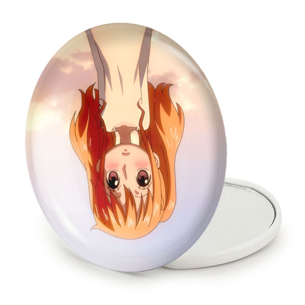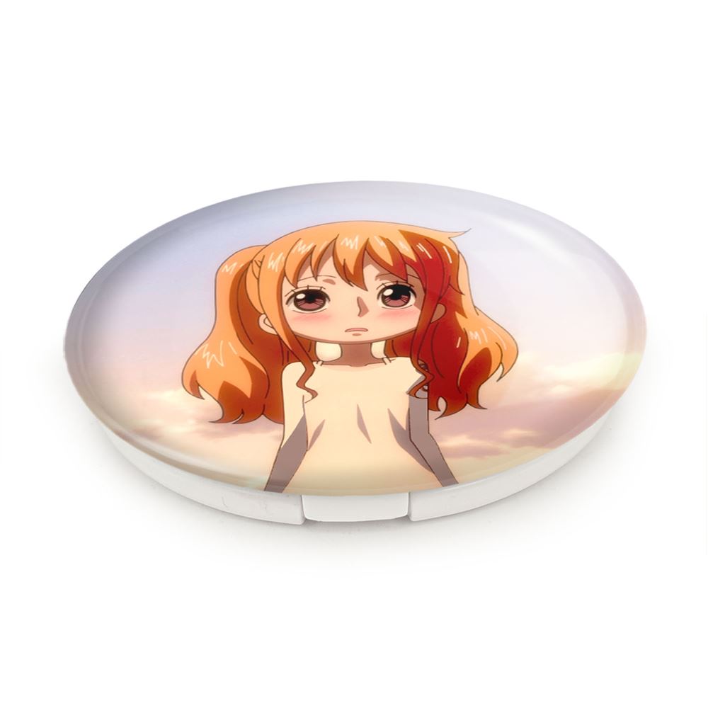 آینه های تاشو نامی انیمه وان پیس One Piece خندالو، از جنس پلاستیک فشرده ABS تولید شده و به رنگ سفید می باشد. یکی از آینه ها ابعاد واقعی را نشان داده و دیگری با قابلیت بزرگنمایی، جزئیات را بهتر نمایش می دهد. ابعاد هر یک از آینه ها، دایره ای به قطر 7.5 سانت می باشد که نه خیلی بزرگ و غیر قابل استفاده در کیف آرایشی ست و نه خیلی کوچک که تصویر خاصی در آن مشاهده نشود. آینه تاشو نامی انیمه وان پیس One Piece سایزی استاندارد و کارآمد دارد و در هر کیفی جا میگیرد. چاپ طرح بوسیله چاپگرهای دیجیتال شش رنگ با شفافیت و کیفیتی مثال زدنی بر روی یک وجه از بدنه ی آینه انجام گرفته و با روکش لمینت حرارتی پوشیده شده که در مقابل آسیب و خط و خش مقاوم بوده و کیفیت بالایی دارد. درب آینه بوسیله قفل بدنه ی آن، باز نمی ماند و کاملا بسته می شود و مناسب قرار گیری در کیف لوازم آرایش و کیف های کوچک دستی نیز هست. آینه های تاشو نامی انیمه وان پیس One Piece خندالو با تنوع طرحی بسیار بالا، سلیقه هر نوع مخاطبی را تامین میکند.
