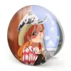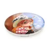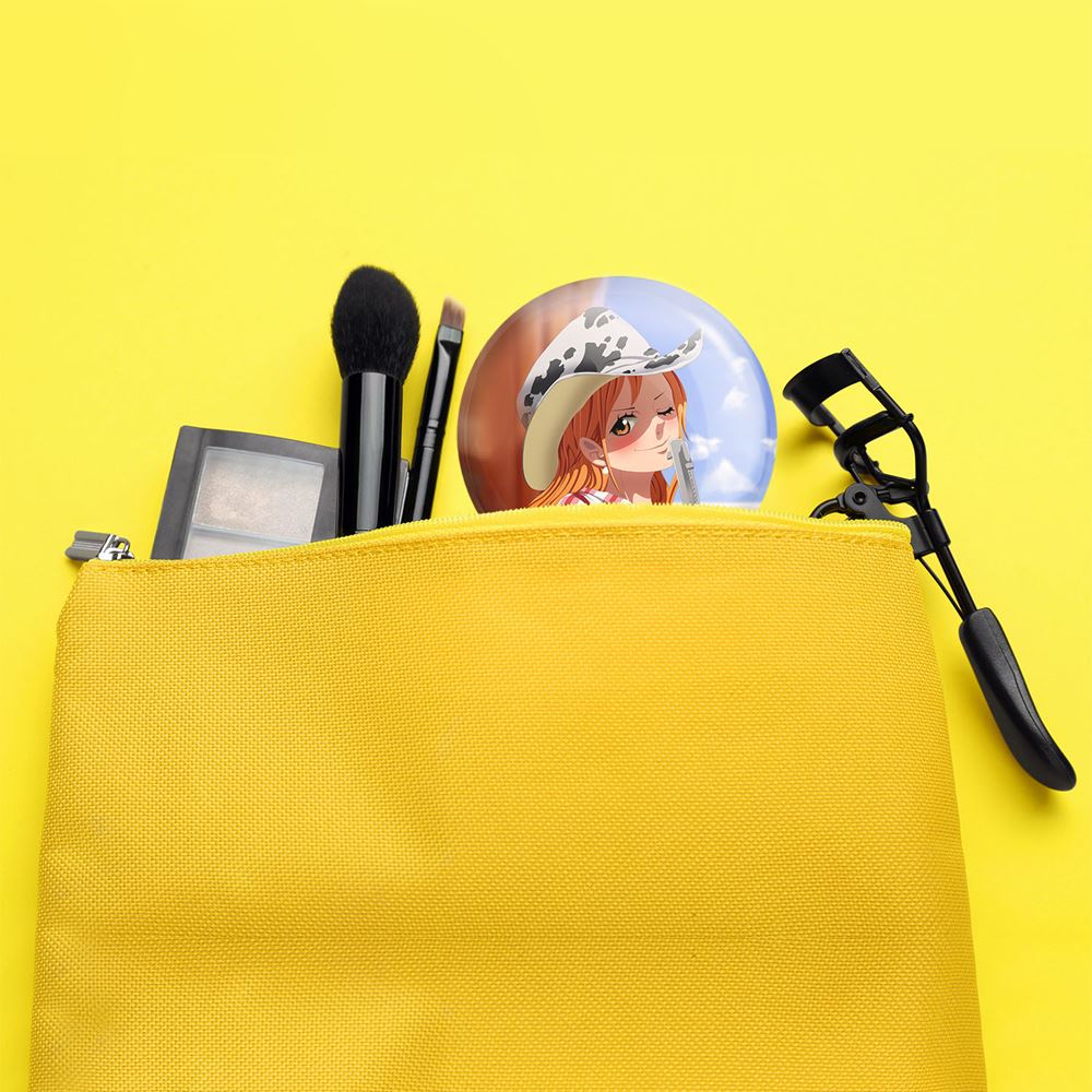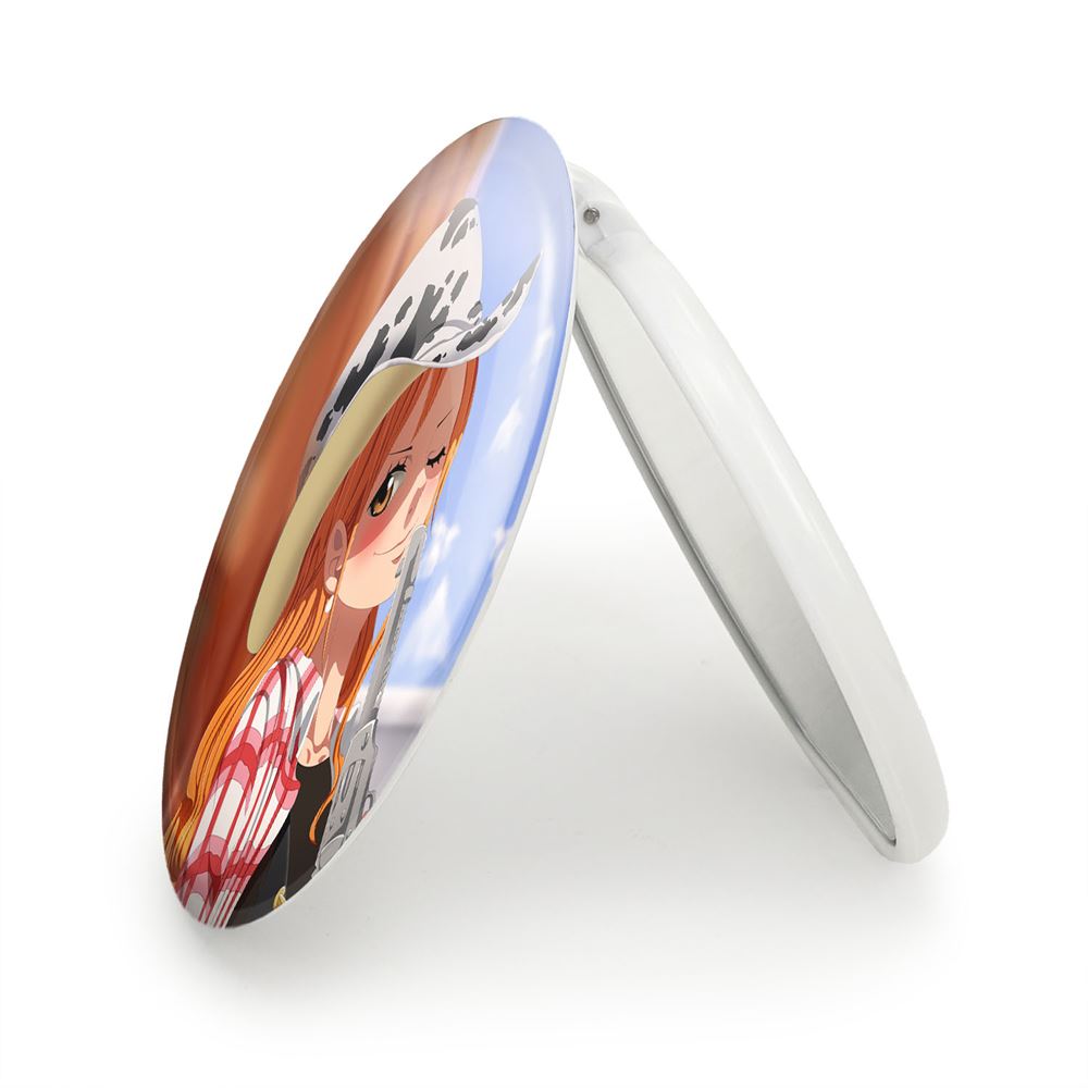 آینه های تاشو نامی انیمه وان پیس One Piece خندالو، از جنس پلاستیک فشرده ABS تولید شده و به رنگ سفید می باشد. یکی از آینه ها ابعاد واقعی را نشان داده و دیگری با قابلیت بزرگنمایی، جزئیات را بهتر نمایش می دهد. ابعاد هر یک از آینه ها، دایره ای به قطر 7.5 سانت می باشد که نه خیلی بزرگ و غیر قابل استفاده در کیف آرایشی ست و نه خیلی کوچک که تصویر خاصی در آن مشاهده نشود. آینه تاشو نامی انیمه وان پیس One Piece سایزی استاندارد و کارآمد دارد و در هر کیفی جا میگیرد. چاپ طرح بوسیله چاپگرهای دیجیتال شش رنگ با شفافیت و کیفیتی مثال زدنی بر روی یک وجه از بدنه ی آینه انجام گرفته و با روکش لمینت حرارتی پوشیده شده که در مقابل آسیب و خط و خش مقاوم بوده و کیفیت بالایی دارد. درب آینه بوسیله قفل بدنه ی آن، باز نمی ماند و کاملا بسته می شود و مناسب قرار گیری در کیف لوازم آرایش و کیف های کوچک دستی نیز هست. آینه های تاشو نامی انیمه وان پیس One Piece خندالو با تنوع طرحی بسیار بالا، سلیقه هر نوع مخاطبی را تامین میکند.