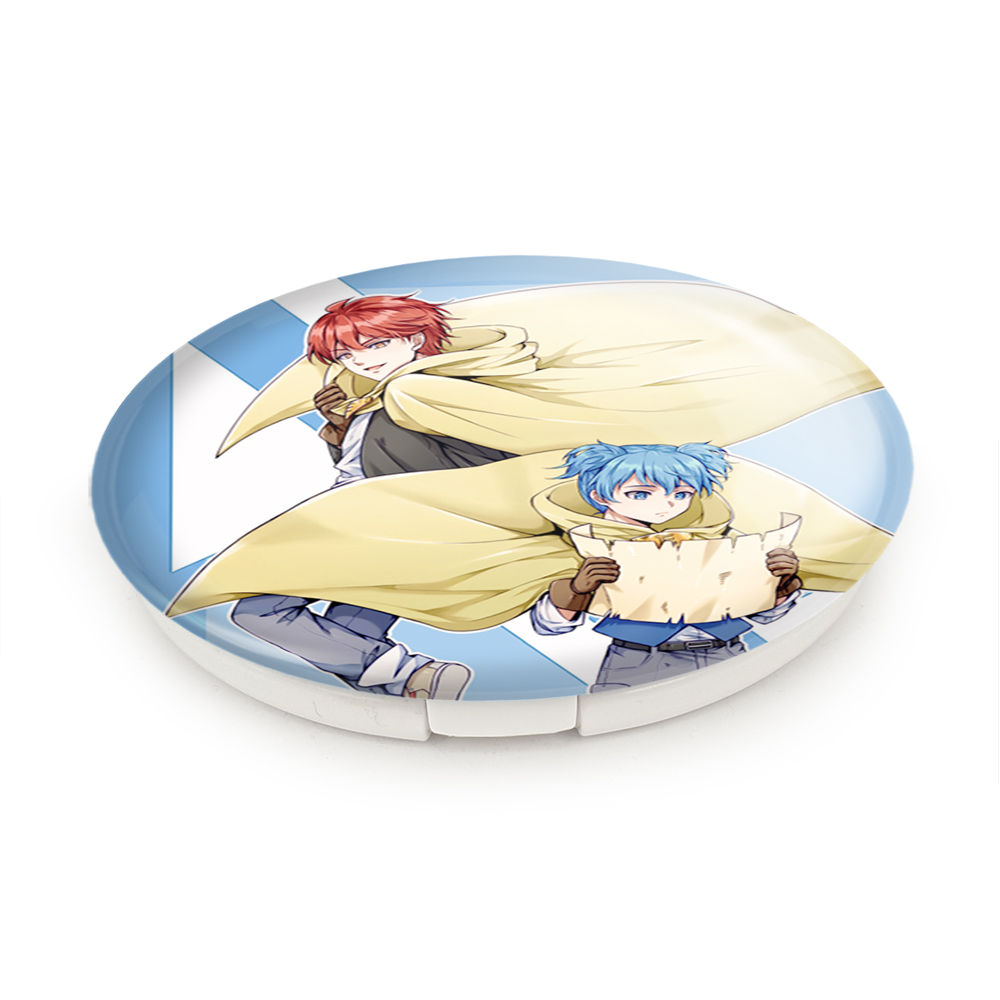 آینه های تاشو ناگیسا و کارما انیمه کلاس آدمکشی خندالو، از جنس پلاستیک فشرده ABS تولید شده و به رنگ سفید می باشد. یکی از آینه ها ابعاد واقعی را نشان داده و دیگری با قابلیت بزرگنمایی، جزئیات را بهتر نمایش می دهد. ابعاد هر یک از آینه ها، دایره ای به قطر 7.5 سانت می باشد که نه خیلی بزرگ و غیر قابل استفاده در کیف آرایشی ست و نه خیلی کوچک که تصویر خاصی در آن مشاهده نشود. آینه تاشو ناگیسا و کارما انیمه کلاس آدمکشی سایزی استاندارد و کارآمد دارد و در هر کیفی جا میگیرد. چاپ طرح بوسیله چاپگرهای دیجیتال شش رنگ با شفافیت و کیفیتی مثال زدنی بر روی یک وجه از بدنه ی آینه انجام گرفته و با روکش لمینت حرارتی پوشیده شده که در مقابل آسیب و خط و خش مقاوم بوده و کیفیت بالایی دارد. درب آینه بوسیله قفل بدنه ی آن، باز نمی ماند و کاملا بسته می شود و مناسب قرار گیری در کیف لوازم آرایش و کیف های کوچک دستی نیز هست. آینه های تاشو ناگیسا و کارما انیمه کلاس آدمکشی خندالو با تنوع طرحی بسیار بالا، سلیقه هر نوع مخاطبی را تامین میکند.