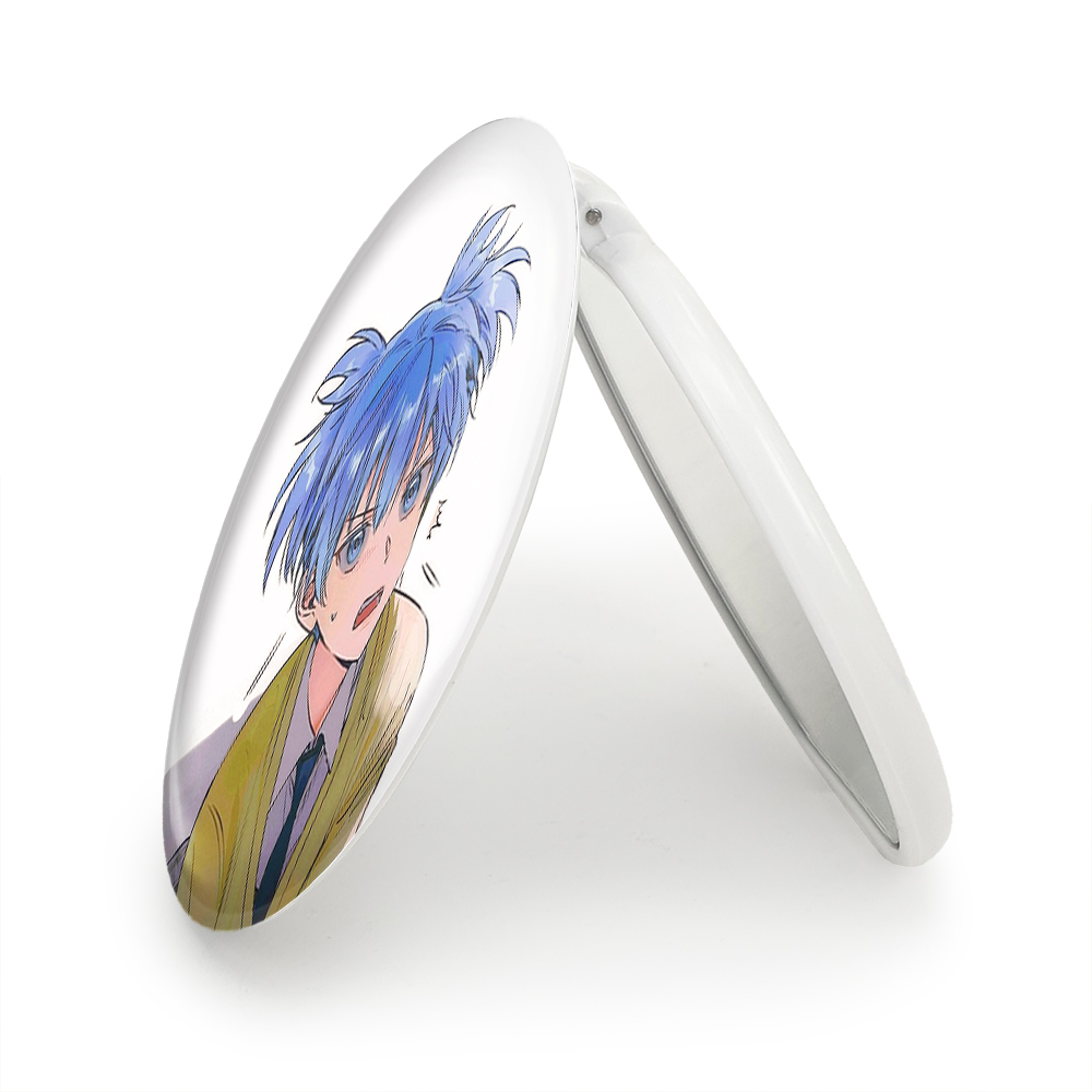 آینه های تاشو ناگیسا و کارما انیمه کلاس آدمکشی خندالو، از جنس پلاستیک فشرده ABS تولید شده و به رنگ سفید می باشد. یکی از آینه ها ابعاد واقعی را نشان داده و دیگری با قابلیت بزرگنمایی، جزئیات را بهتر نمایش می دهد. ابعاد هر یک از آینه ها، دایره ای به قطر 7.5 سانت می باشد که نه خیلی بزرگ و غیر قابل استفاده در کیف آرایشی ست و نه خیلی کوچک که تصویر خاصی در آن مشاهده نشود. آینه تاشو ناگیسا و کارما انیمه کلاس آدمکشی سایزی استاندارد و کارآمد دارد و در هر کیفی جا میگیرد. چاپ طرح بوسیله چاپگرهای دیجیتال شش رنگ با شفافیت و کیفیتی مثال زدنی بر روی یک وجه از بدنه ی آینه انجام گرفته و با روکش لمینت حرارتی پوشیده شده که در مقابل آسیب و خط و خش مقاوم بوده و کیفیت بالایی دارد. درب آینه بوسیله قفل بدنه ی آن، باز نمی ماند و کاملا بسته می شود و مناسب قرار گیری در کیف لوازم آرایش و کیف های کوچک دستی نیز هست. آینه های تاشو ناگیسا و کارما انیمه کلاس آدمکشی خندالو با تنوع طرحی بسیار بالا، سلیقه هر نوع مخاطبی را تامین میکند.