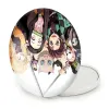 آینه های تاشو نزوکو و اینوسکه و تانیجرو انیمه شیطان کش خندالو، از جنس پلاستیک فشرده ABS تولید شده و به رنگ سفید می باشد. یکی از آینه ها ابعاد واقعی را نشان داده و دیگری با قابلیت بزرگنمایی، جزئیات را بهتر نمایش می دهد. ابعاد هر یک از آینه ها، دایره ای به قطر 7.5 سانت می باشد که نه خیلی بزرگ و غیر قابل استفاده در کیف آرایشی ست و نه خیلی کوچک که تصویر خاصی در آن مشاهده نشود. آینه تاشو نزوکو و اینوسکه و تانیجرو انیمه شیطان کش سایزی استاندارد و کارآمد دارد و در هر کیفی جا میگیرد. چاپ طرح بوسیله چاپگرهای دیجیتال شش رنگ با شفافیت و کیفیتی مثال زدنی بر روی یک وجه از بدنه ی آینه انجام گرفته و با روکش لمینت حرارتی پوشیده شده که در مقابل آسیب و خط و خش مقاوم بوده و کیفیت بالایی دارد. درب آینه بوسیله قفل بدنه ی آن، باز نمی ماند و کاملا بسته می شود و مناسب قرار گیری در کیف لوازم آرایش و کیف های کوچک دستی نیز هست. آینه های تاشو نزوکو و اینوسکه و تانیجرو انیمه شیطان کش خندالو با تنوع طرحی بسیار بالا، سلیقه هر نوع مخاطبی را تامین میکند.
