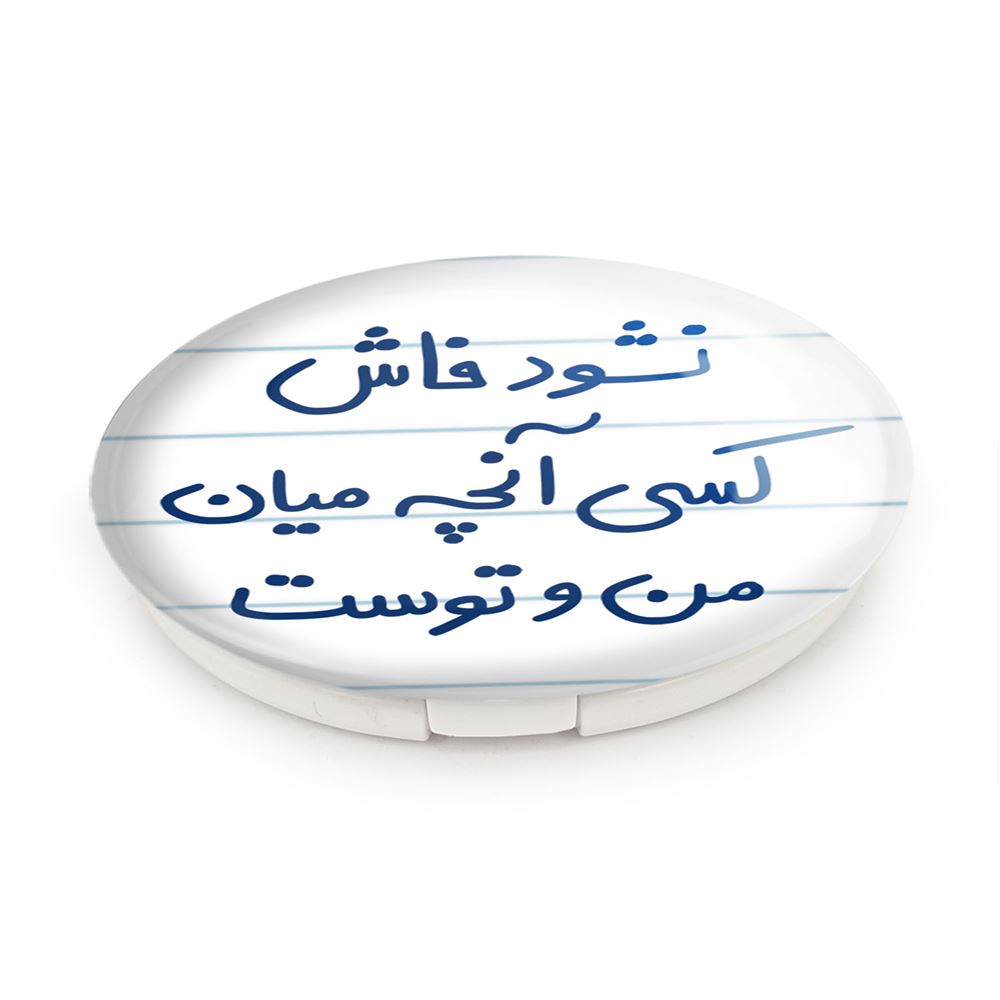 آینه های تاشو نشود فاش کسی آنچه میان من و توست خندالو، از جنس پلاستیک فشرده ABS تولید شده و به رنگ سفید می باشد. یکی از آینه ها ابعاد واقعی را نشان داده و دیگری با قابلیت بزرگنمایی، جزئیات را بهتر نمایش می دهد. ابعاد هر یک از آینه ها، دایره ای به قطر 7.5 سانت می باشد که نه خیلی بزرگ و غیر قابل استفاده در کیف آرایشی ست و نه خیلی کوچک که تصویر خاصی در آن مشاهده نشود. آینه تاشو نشود فاش کسی آنچه میان من و توست سایزی استاندارد و کارآمد دارد و در هر کیفی جا میگیرد. چاپ طرح بوسیله چاپگرهای دیجیتال شش رنگ با شفافیت و کیفیتی مثال زدنی بر روی یک وجه از بدنه ی آینه انجام گرفته و با روکش لمینت حرارتی پوشیده شده که در مقابل آسیب و خط و خش مقاوم بوده و کیفیت بالایی دارد. درب آینه بوسیله قفل بدنه ی آن، باز نمی ماند و کاملا بسته می شود و مناسب قرار گیری در کیف لوازم آرایش و کیف های کوچک دستی نیز هست. آینه های تاشو نشود فاش کسی آنچه میان من و توست خندالو با تنوع طرحی بسیار بالا، سلیقه هر نوع مخاطبی را تامین میکند.
