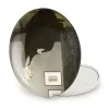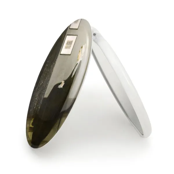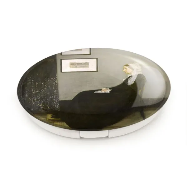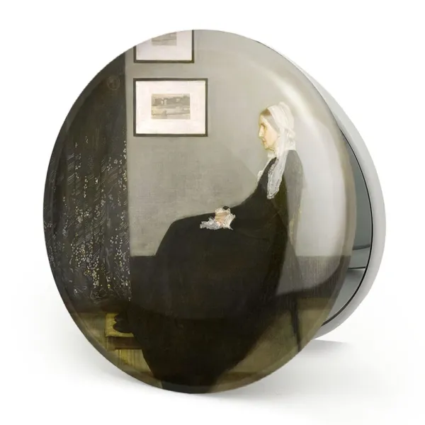 آینه های تاشو نقاشی مادام ویسلر در پاریس خندالو، از جنس پلاستیک فشرده ABS تولید شده و به رنگ سفید می باشد. یکی از آینه ها ابعاد واقعی را نشان داده و دیگری با قابلیت بزرگنمایی، جزئیات را بهتر نمایش می دهد. ابعاد هر یک از آینه ها، دایره ای به قطر 7.5 سانت می باشد که نه خیلی بزرگ و غیر قابل استفاده در کیف آرایشی ست و نه خیلی کوچک که تصویر خاصی در آن مشاهده نشود. آینه تاشو نقاشی مادام ویسلر در پاریس سایزی استاندارد و کارآمد دارد و در هر کیفی جا میگیرد. چاپ طرح بوسیله چاپگرهای دیجیتال شش رنگ با شفافیت و کیفیتی مثال زدنی بر روی یک وجه از بدنه ی آینه انجام گرفته و با روکش لمینت حرارتی پوشیده شده که در مقابل آسیب و خط و خش مقاوم بوده و کیفیت بالایی دارد. درب آینه بوسیله قفل بدنه ی آن، باز نمی ماند و کاملا بسته می شود و مناسب قرار گیری در کیف لوازم آرایش و کیف های کوچک دستی نیز هست. آینه های تاشو نقاشی مادام ویسلر در پاریس خندالو با تنوع طرحی بسیار بالا، سلیقه هر نوع مخاطبی را تامین میکند.