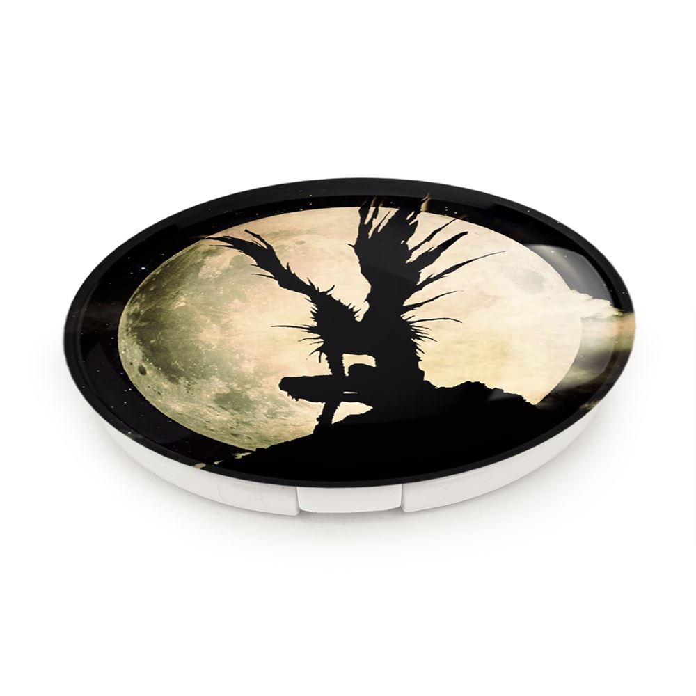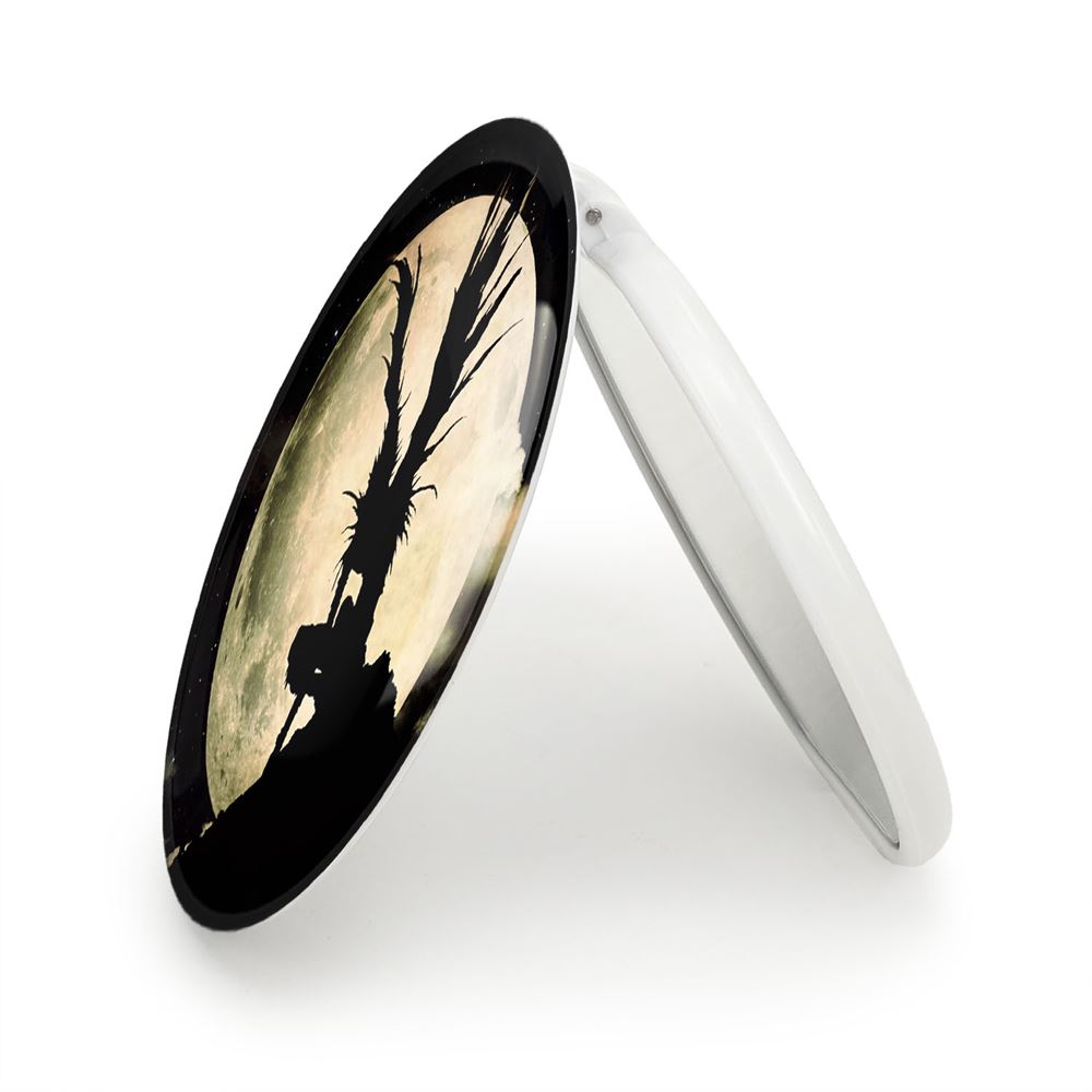 آینه های تاشو نماد شینیگامی انیمه دفترچه مرگ Death Note خندالو، از جنس پلاستیک فشرده ABS تولید شده و به رنگ سفید می باشد. یکی از آینه ها ابعاد واقعی را نشان داده و دیگری با قابلیت بزرگنمایی، جزئیات را بهتر نمایش می دهد. ابعاد هر یک از آینه ها، دایره ای به قطر 7.5 سانت می باشد که نه خیلی بزرگ و غیر قابل استفاده در کیف آرایشی ست و نه خیلی کوچک که تصویر خاصی در آن مشاهده نشود. آینه تاشو نماد شینیگامی انیمه دفترچه مرگ Death Note سایزی استاندارد و کارآمد دارد و در هر کیفی جا میگیرد. چاپ طرح بوسیله چاپگرهای دیجیتال شش رنگ با شفافیت و کیفیتی مثال زدنی بر روی یک وجه از بدنه ی آینه انجام گرفته و با روکش لمینت حرارتی پوشیده شده که در مقابل آسیب و خط و خش مقاوم بوده و کیفیت بالایی دارد. درب آینه بوسیله قفل بدنه ی آن، باز نمی ماند و کاملا بسته می شود و مناسب قرار گیری در کیف لوازم آرایش و کیف های کوچک دستی نیز هست. آینه های تاشو نماد شینیگامی انیمه دفترچه مرگ Death Note خندالو با تنوع طرحی بسیار بالا، سلیقه هر نوع مخاطبی را تامین میکند.