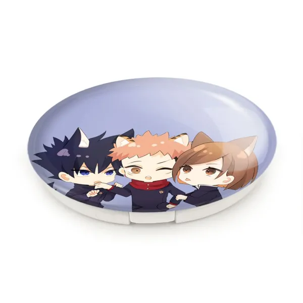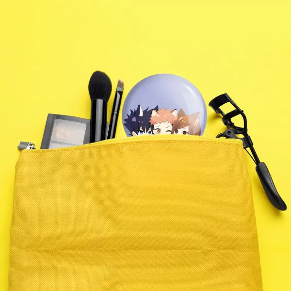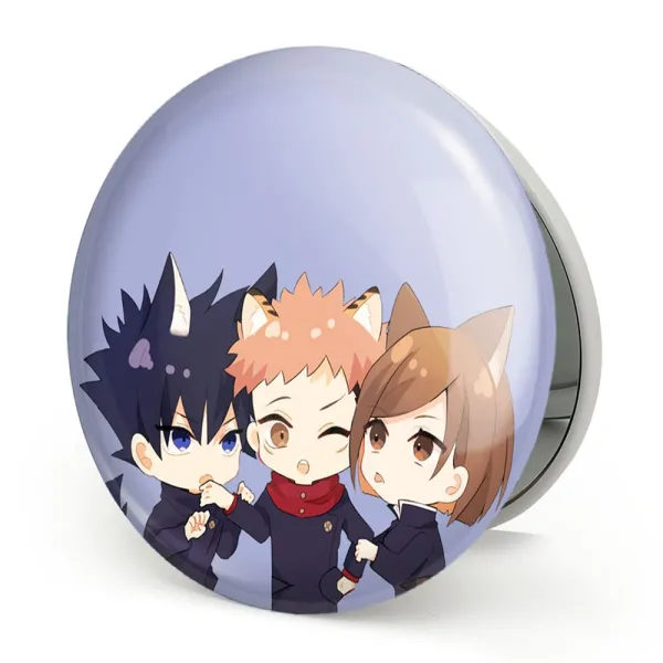 آینه های تاشو نوبارا و ایتادوری و مگومی انیمه جوجوتسو کایزن خندالو، از جنس پلاستیک فشرده ABS تولید شده و به رنگ سفید می باشد. یکی از آینه ها ابعاد واقعی را نشان داده و دیگری با قابلیت بزرگنمایی، جزئیات را بهتر نمایش می دهد. ابعاد هر یک از آینه ها، دایره ای به قطر 7.5 سانت می باشد که نه خیلی بزرگ و غیر قابل استفاده در کیف آرایشی ست و نه خیلی کوچک که تصویر خاصی در آن مشاهده نشود. آینه تاشو نوبارا و ایتادوری و مگومی انیمه جوجوتسو کایزن سایزی استاندارد و کارآمد دارد و در هر کیفی جا میگیرد. چاپ طرح بوسیله چاپگرهای دیجیتال شش رنگ با شفافیت و کیفیتی مثال زدنی بر روی یک وجه از بدنه ی آینه انجام گرفته و با روکش لمینت حرارتی پوشیده شده که در مقابل آسیب و خط و خش مقاوم بوده و کیفیت بالایی دارد. درب آینه بوسیله قفل بدنه ی آن، باز نمی ماند و کاملا بسته می شود و مناسب قرار گیری در کیف لوازم آرایش و کیف های کوچک دستی نیز هست. آینه های تاشو نوبارا و ایتادوری و مگومی انیمه جوجوتسو کایزن خندالو با تنوع طرحی بسیار بالا، سلیقه هر نوع مخاطبی را تامین میکند.
